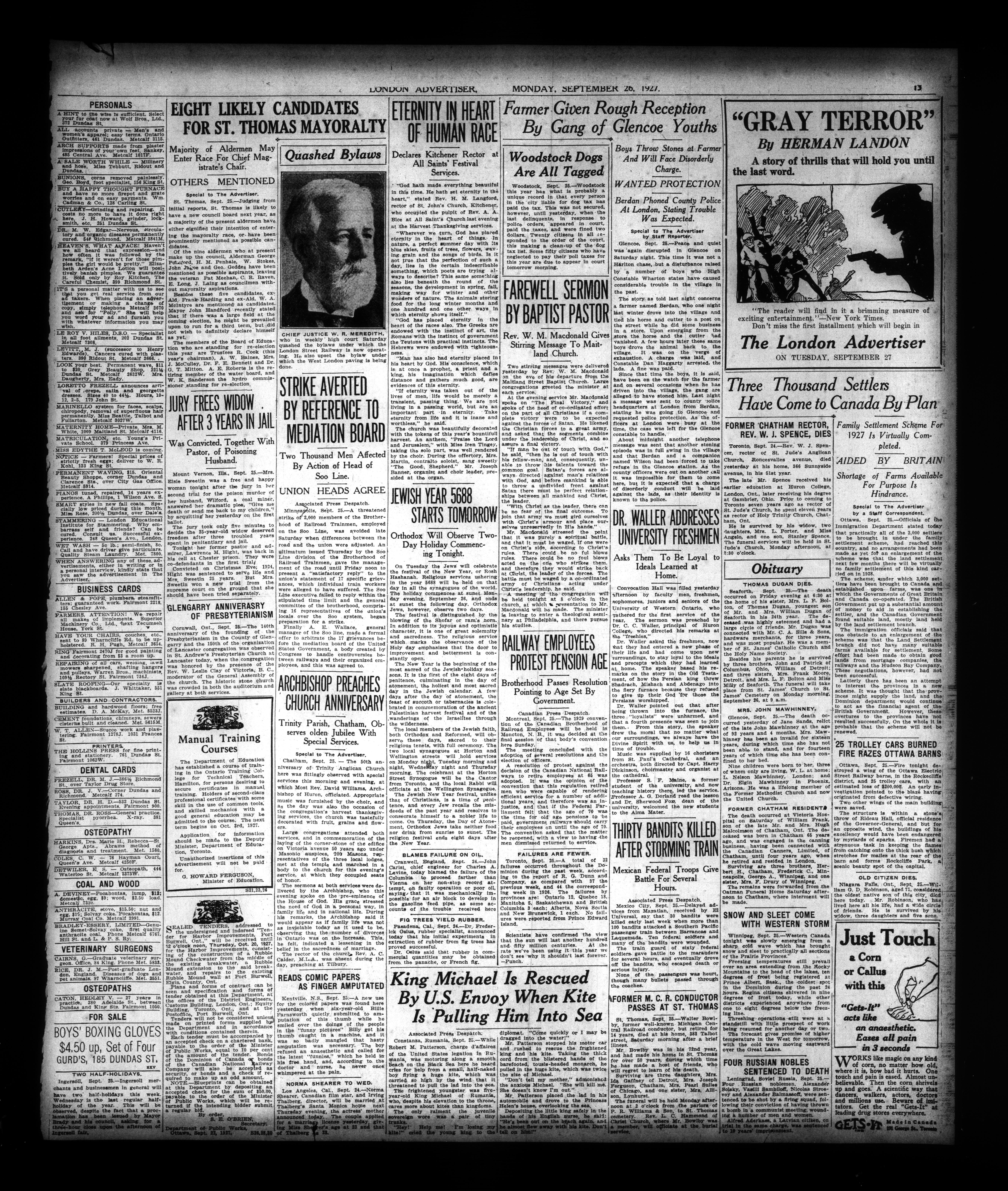 London, Ontario : London Advertiser Company, Limited, [1927]; 14 images, 0 avec recherche en texte intégral
