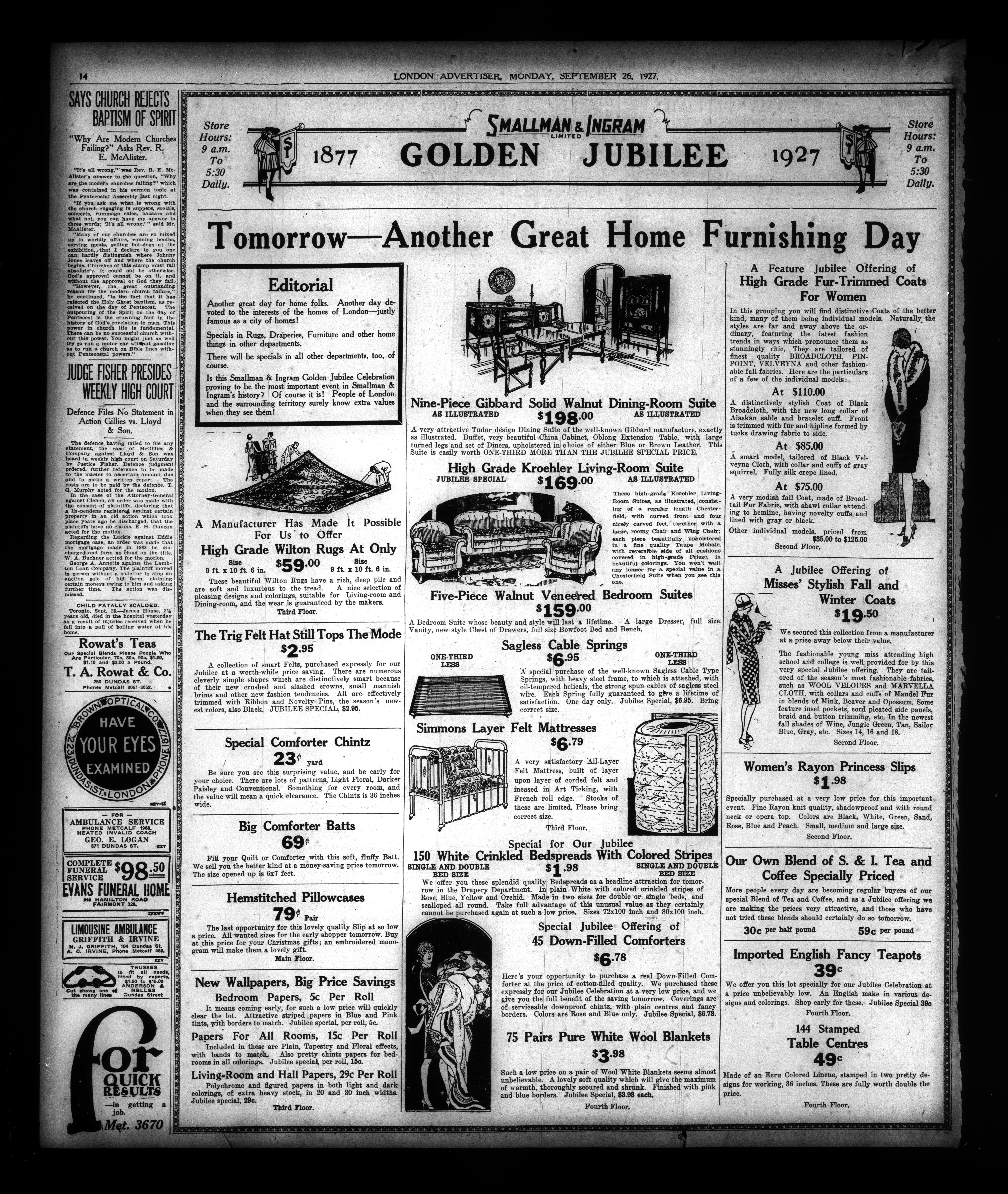 London, Ontario : London Advertiser Company, Limited, [1927]; 14 images, 0 avec recherche en texte intégral
