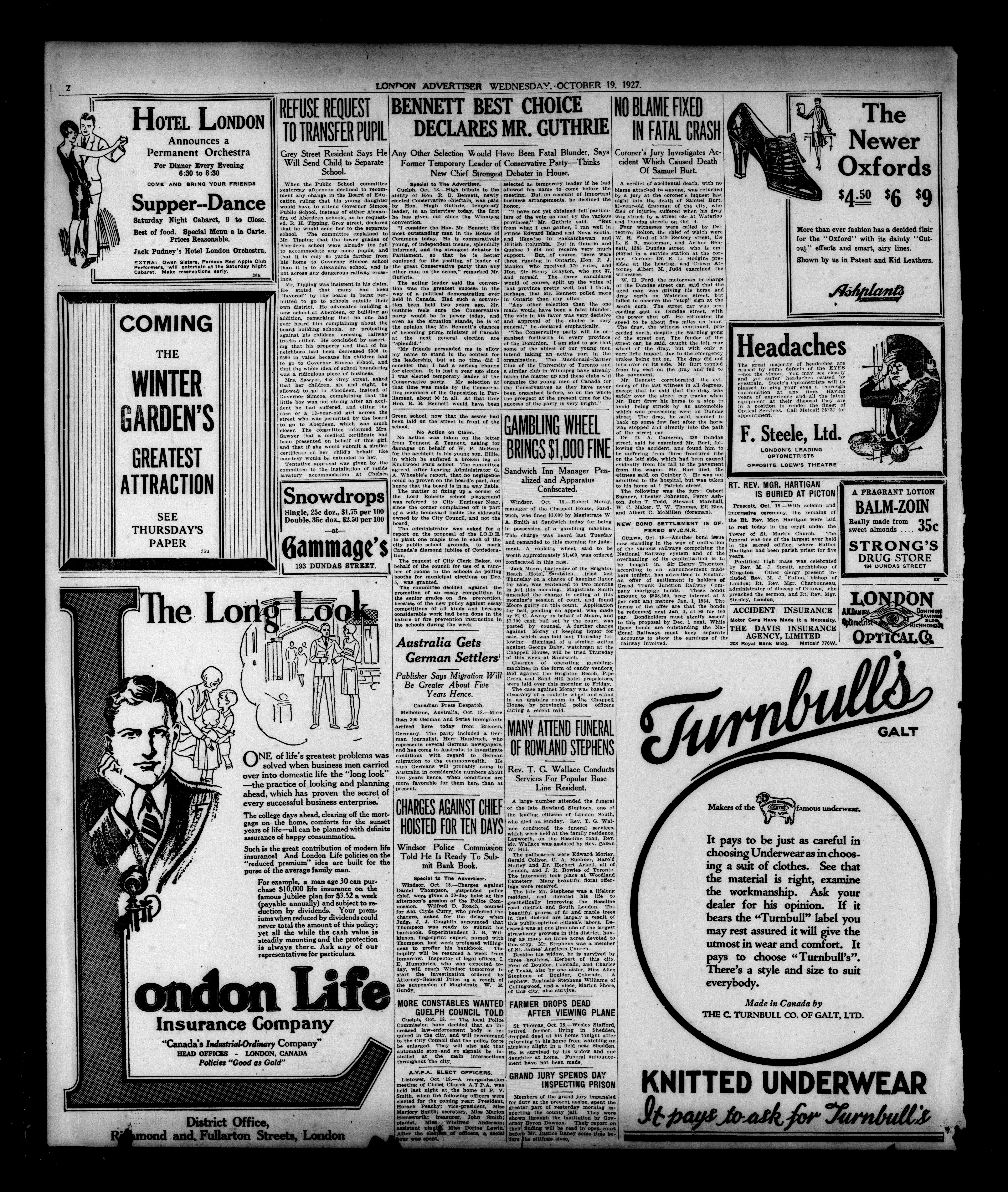 Aide London, Ontario : London Advertiser Company, Limited, [1927]; 18 images, 0 avec recherche en texte intégral