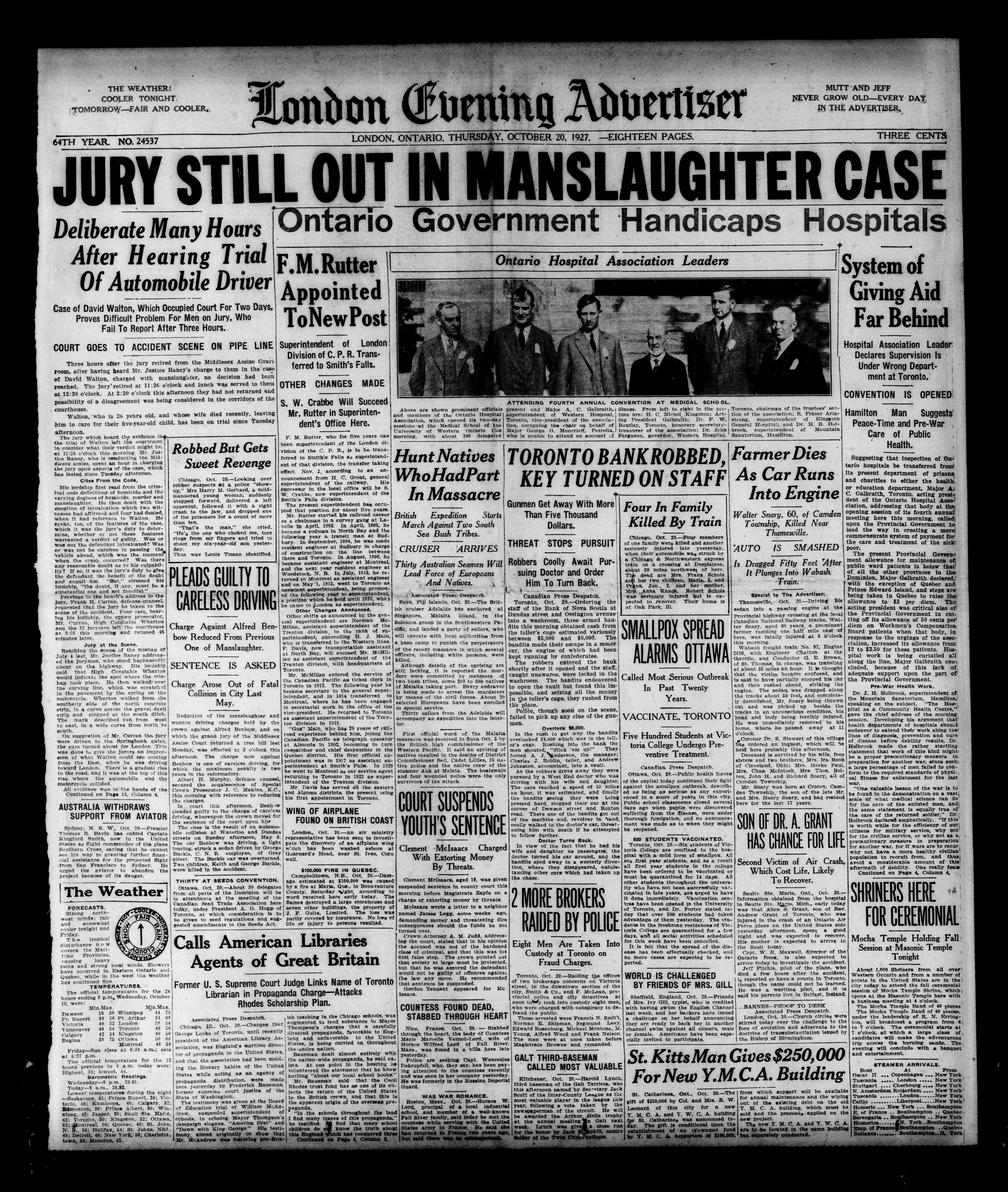 London Evening Advertiser. : London evening advertiser : 64th Year, No. 24537 (October 20, 1927)