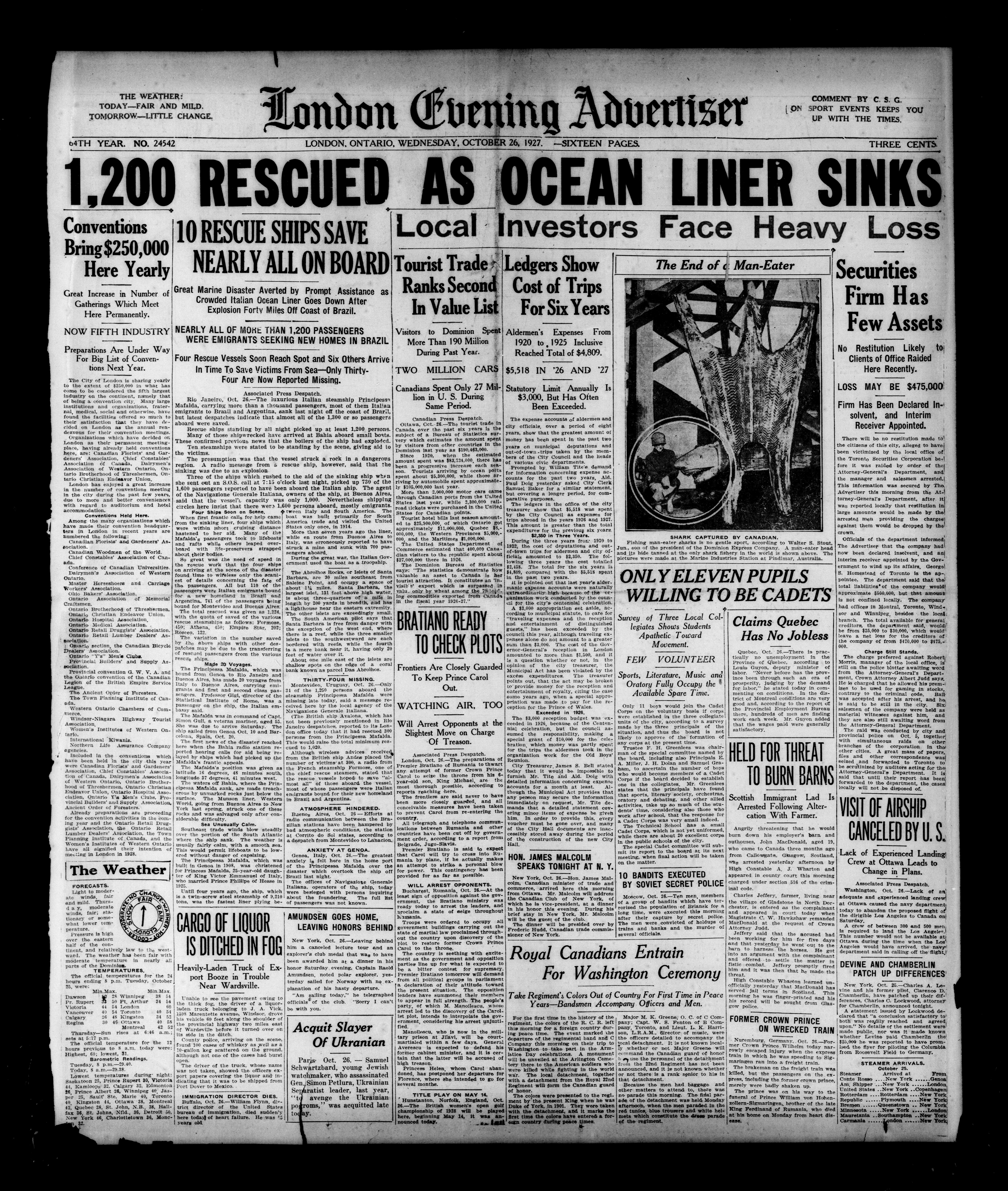 London, Ontario : London Advertiser Company, Limited, [1927]; 15 images, 0 avec recherche en texte intégral