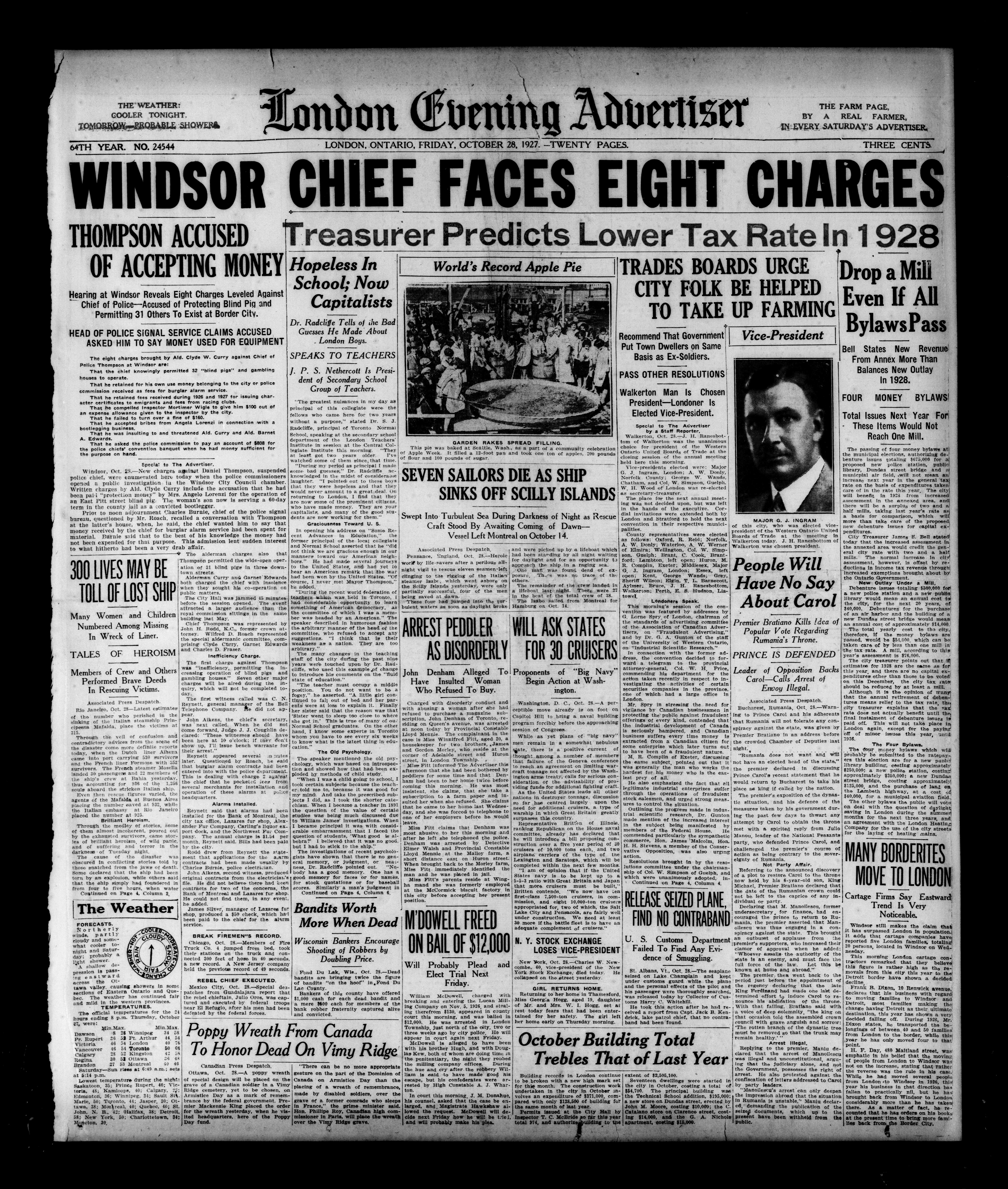 London Evening Advertiser. : London evening advertiser : 64th Year, No. 24544 (October 28, 1927)