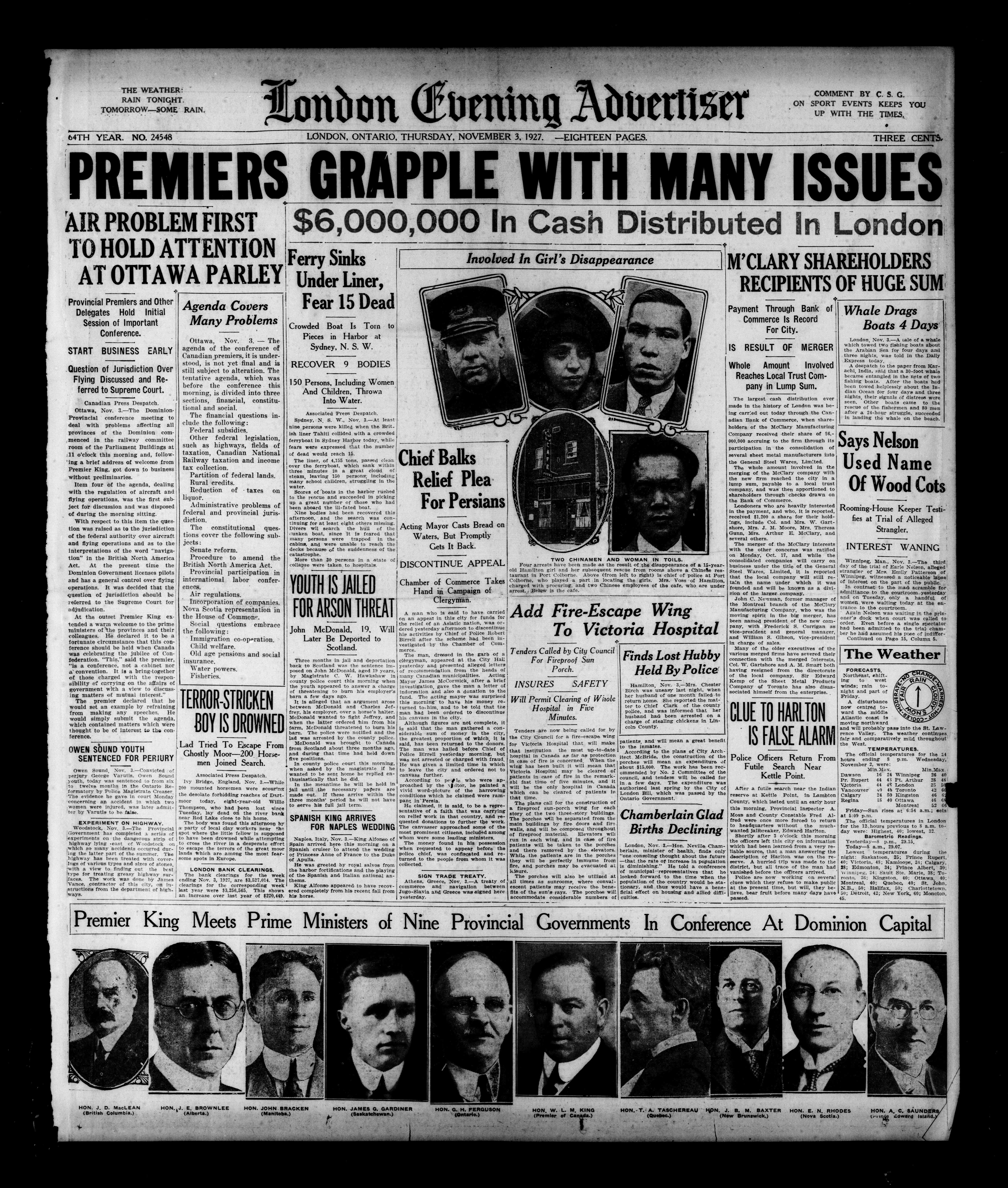London Evening Advertiser. : London evening advertiser : 64th Year, No. 24548 (November 3, 1927)