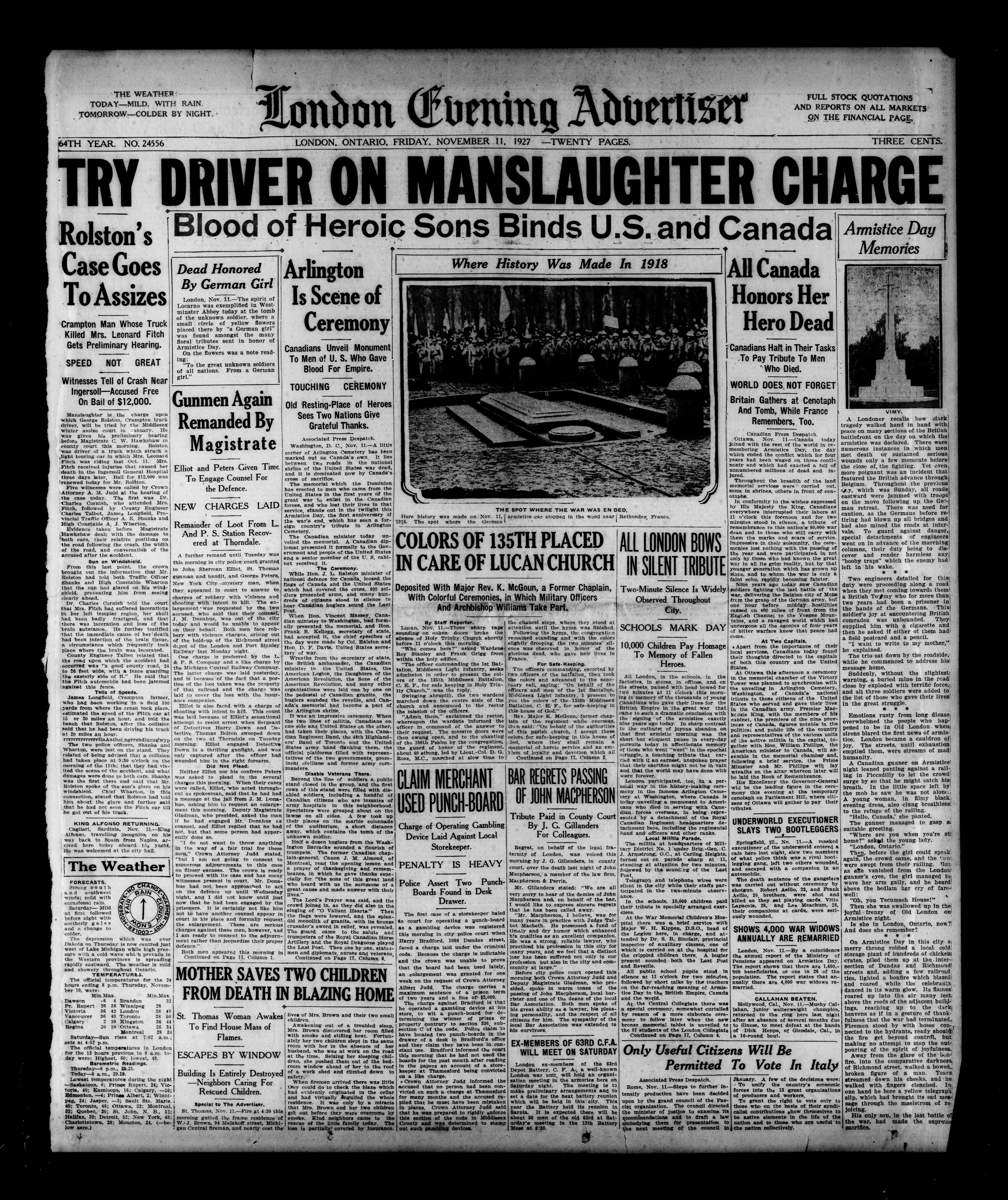London Evening Advertiser. : London evening advertiser : 64th Year, No. 24556 (November 11, 1927)