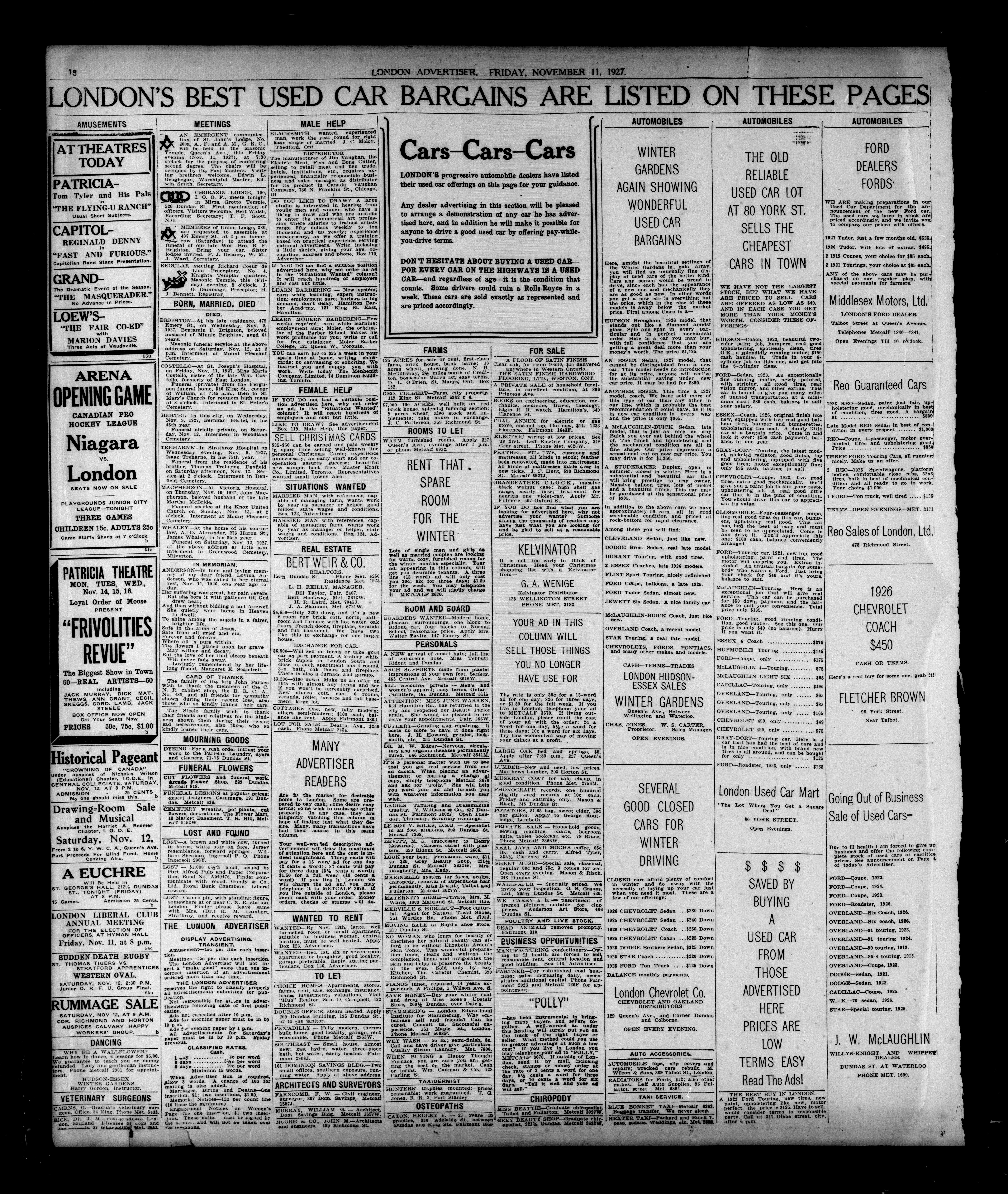 London, Ontario : London Advertiser Company, Limited, [1927]; 20 images, 0 avec recherche en texte intégral
