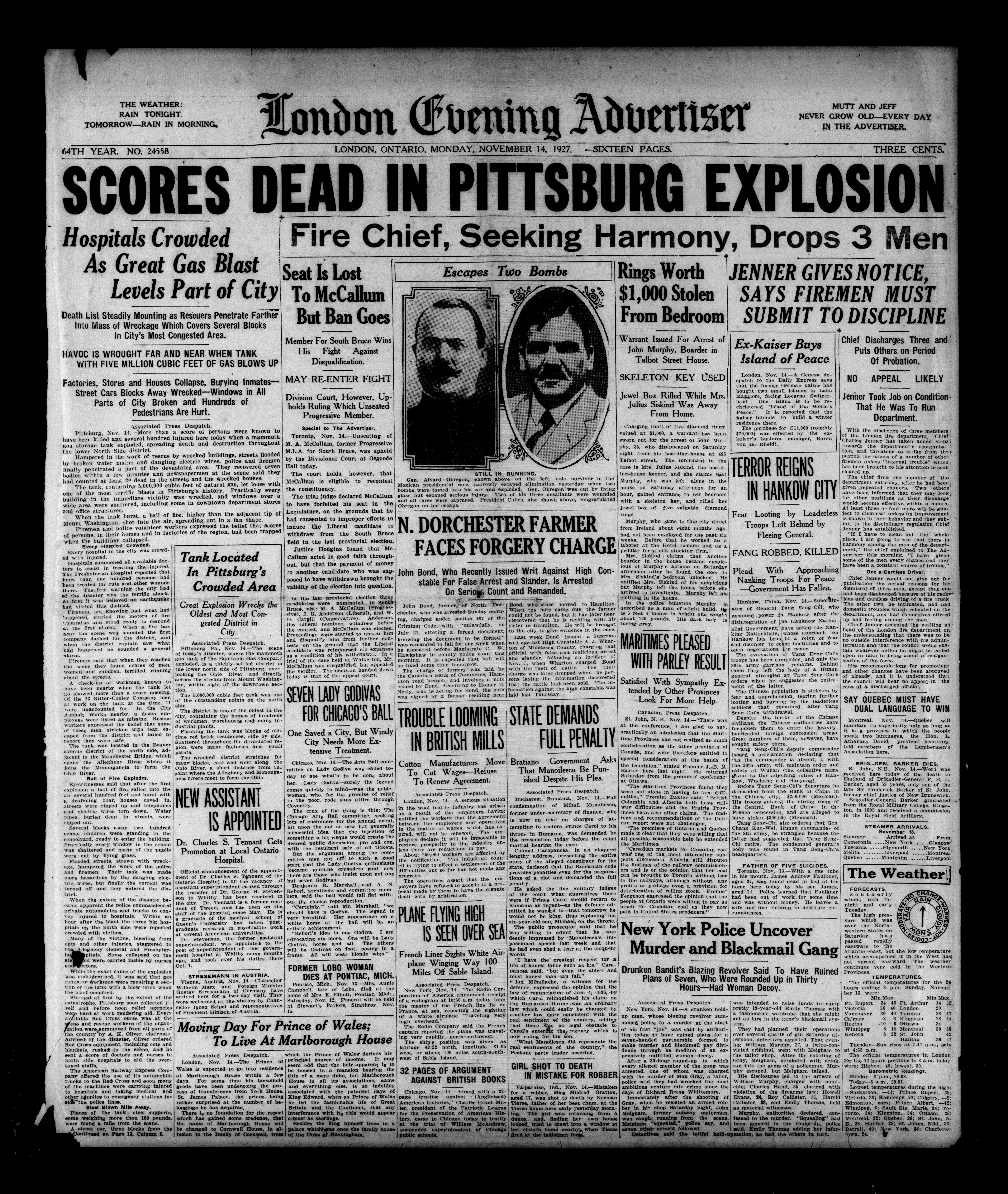 London, Ontario : London Advertiser Company, Limited, [1927]; 16 images, 0 avec recherche en texte intégral