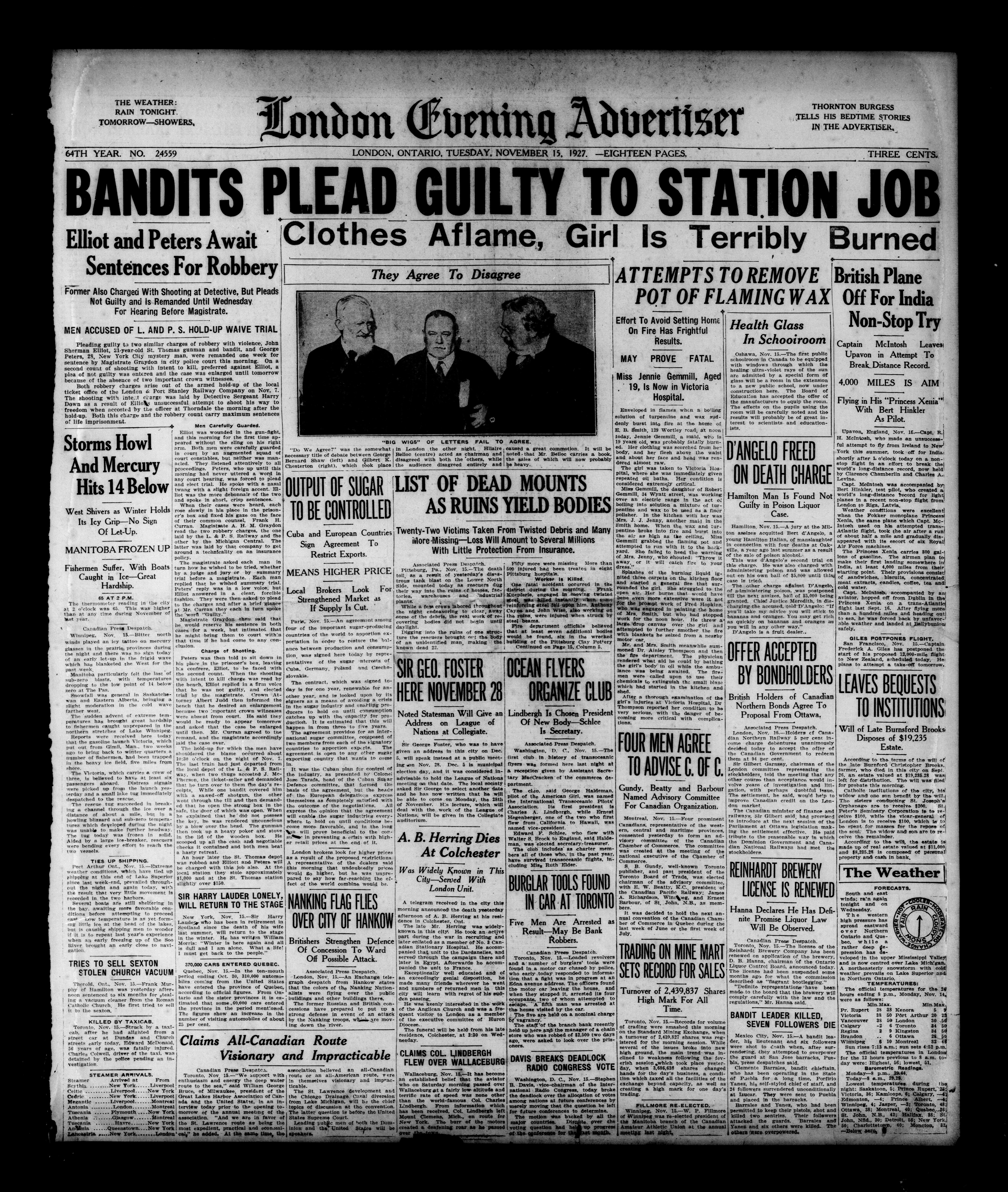 London, Ontario : London Advertiser Company, Limited, [1927]; 18 images, 0 avec recherche en texte intégral