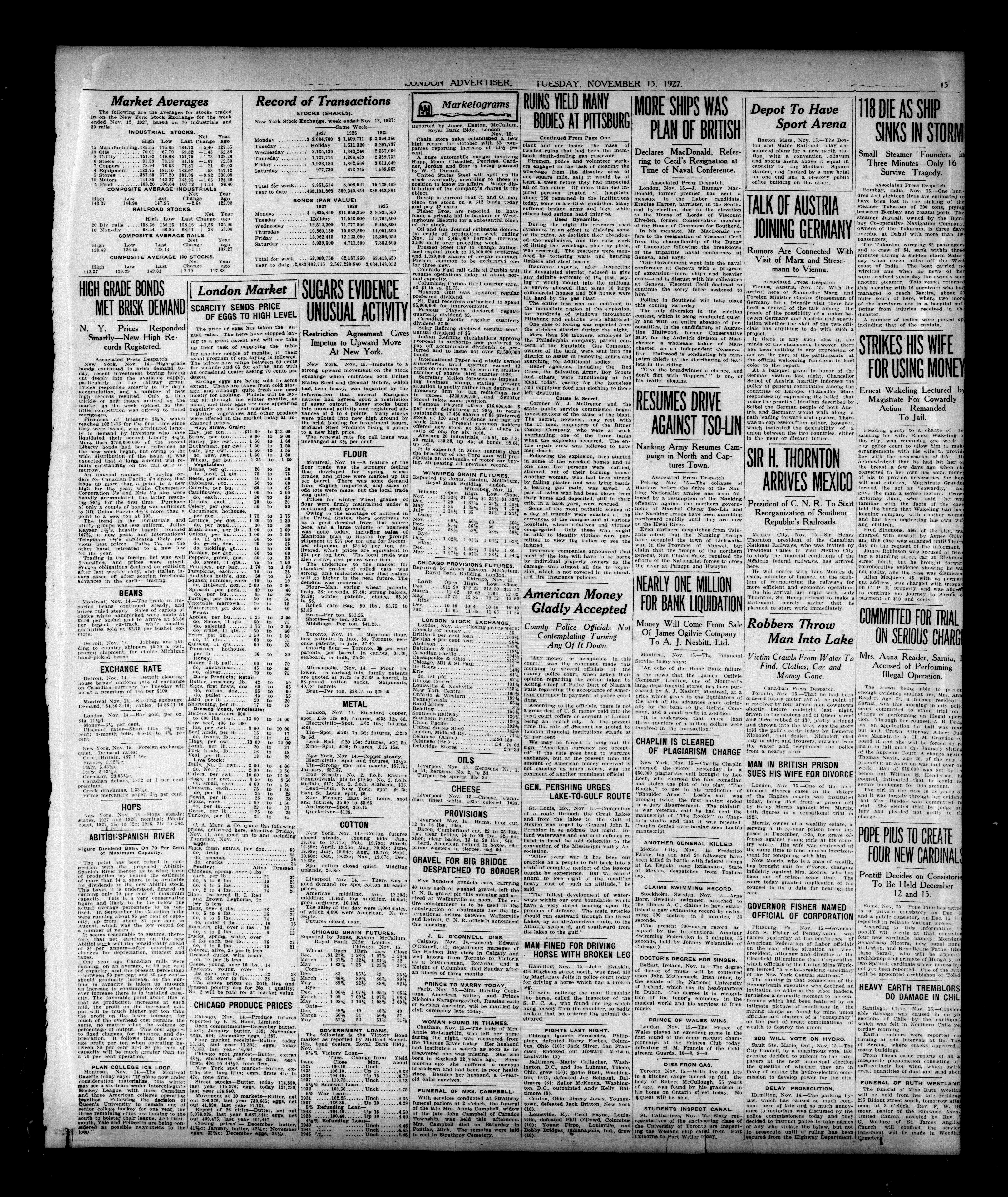 London, Ontario : London Advertiser Company, Limited, [1927]; 18 images, 0 avec recherche en texte intégral