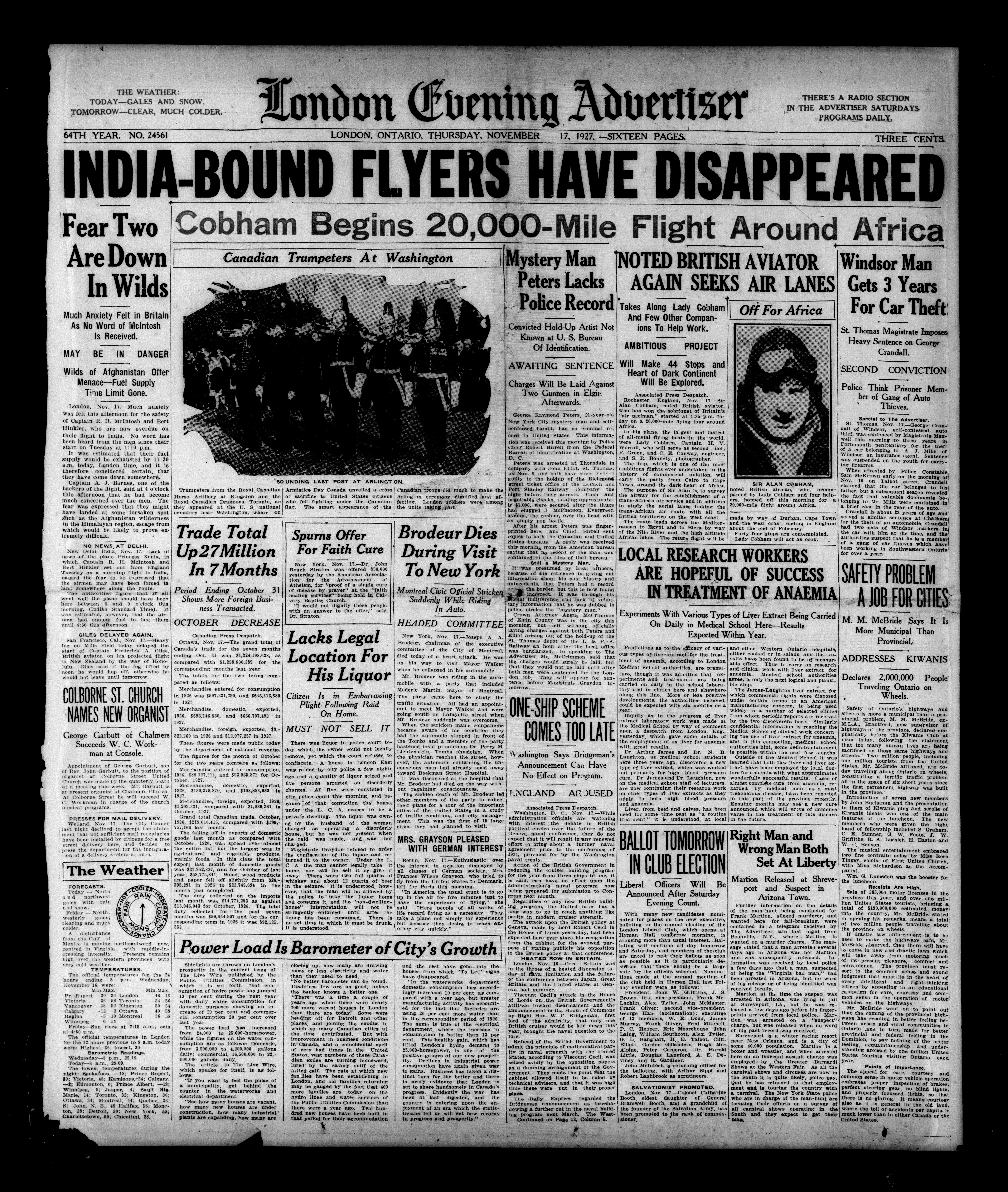 London, Ontario : London Advertiser Company, Limited, [1927]; 16 images, 0 avec recherche en texte intégral