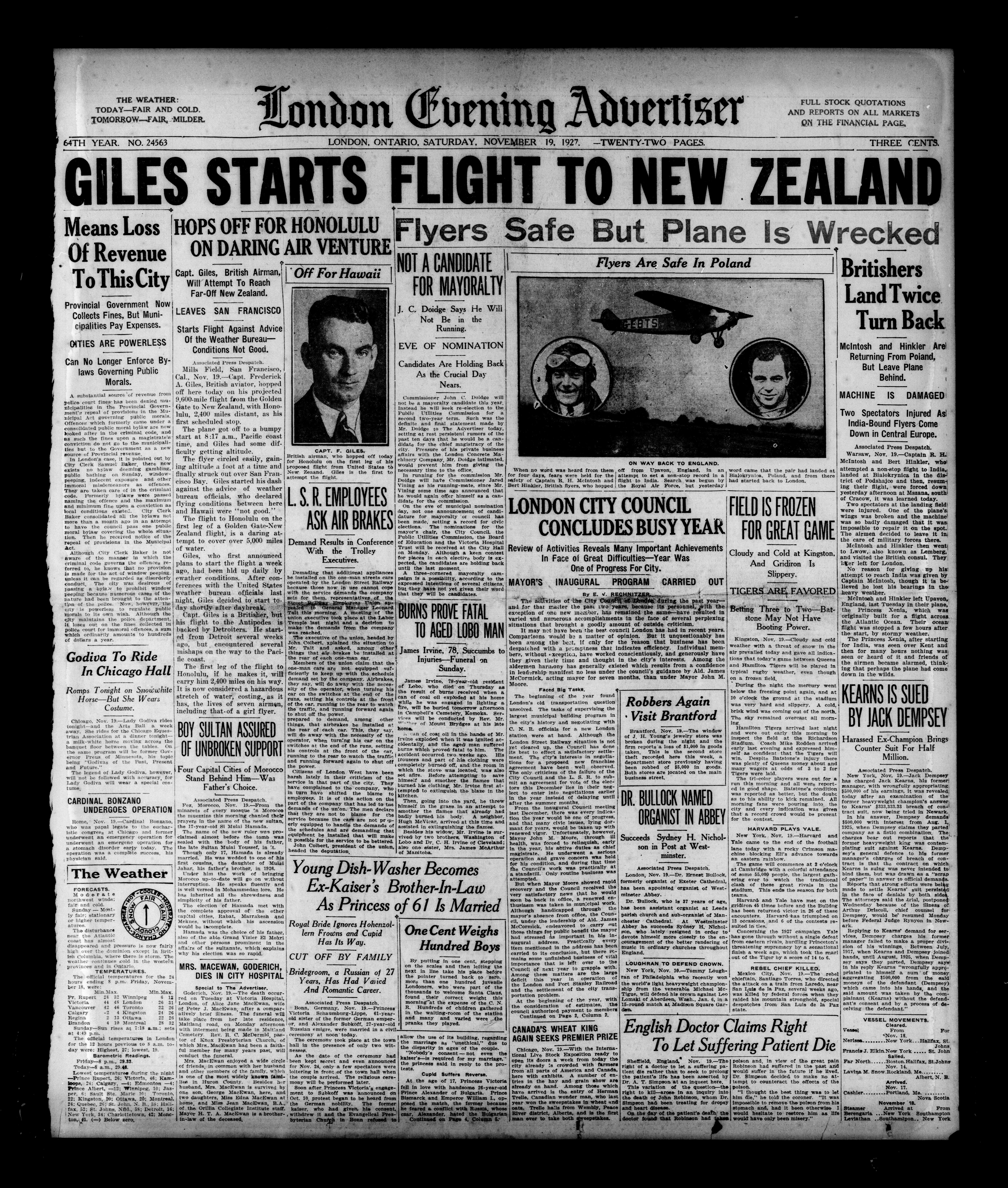 London, Ontario : London Advertiser Company, Limited, [1927]; 22 images, 0 avec recherche en texte intégral