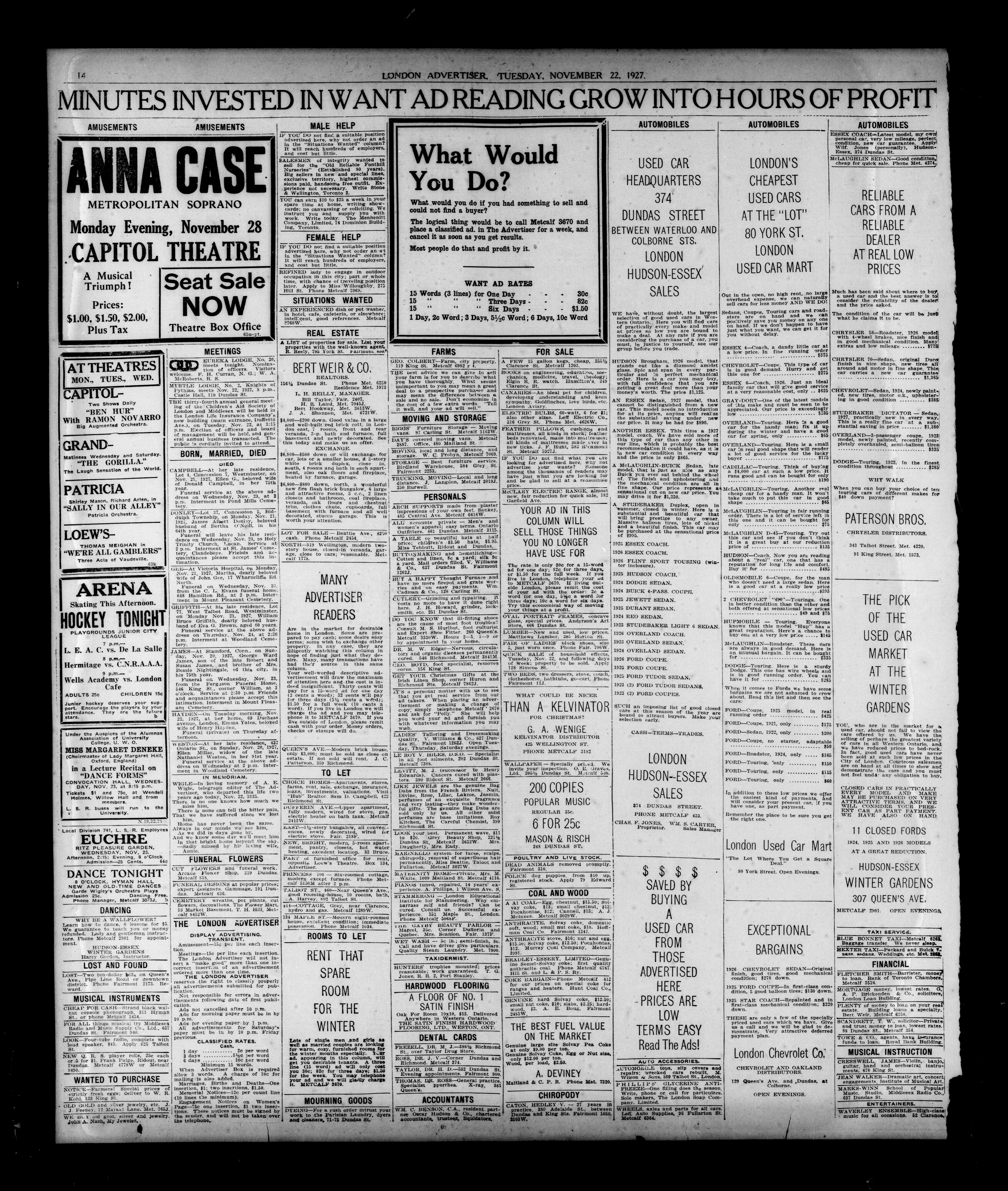 London, Ontario : London Advertiser Company, Limited, [1927]; 16 images, 0 avec recherche en texte intégral