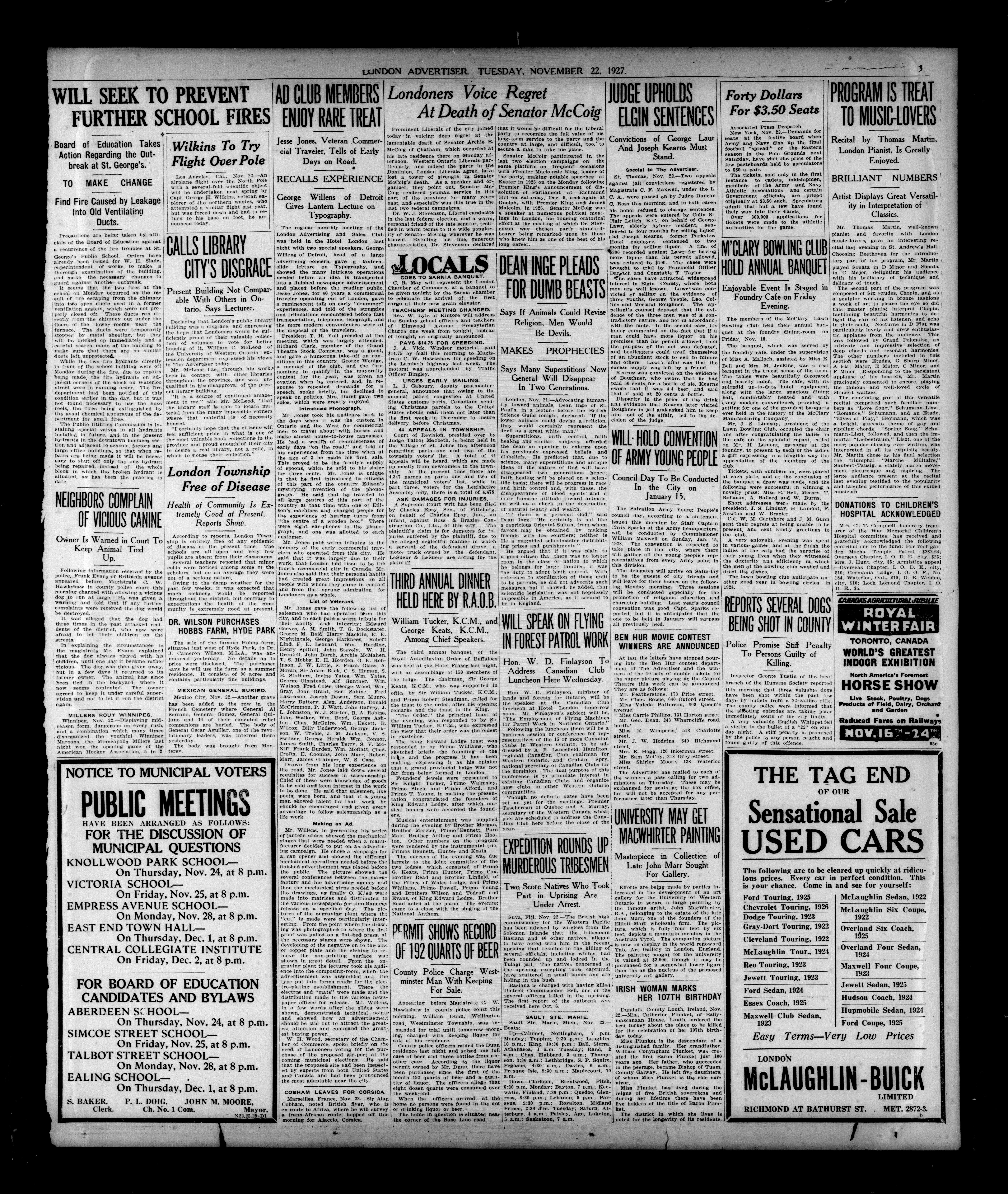 London, Ontario : London Advertiser Company, Limited, [1927]; 16 images, 0 avec recherche en texte intégral