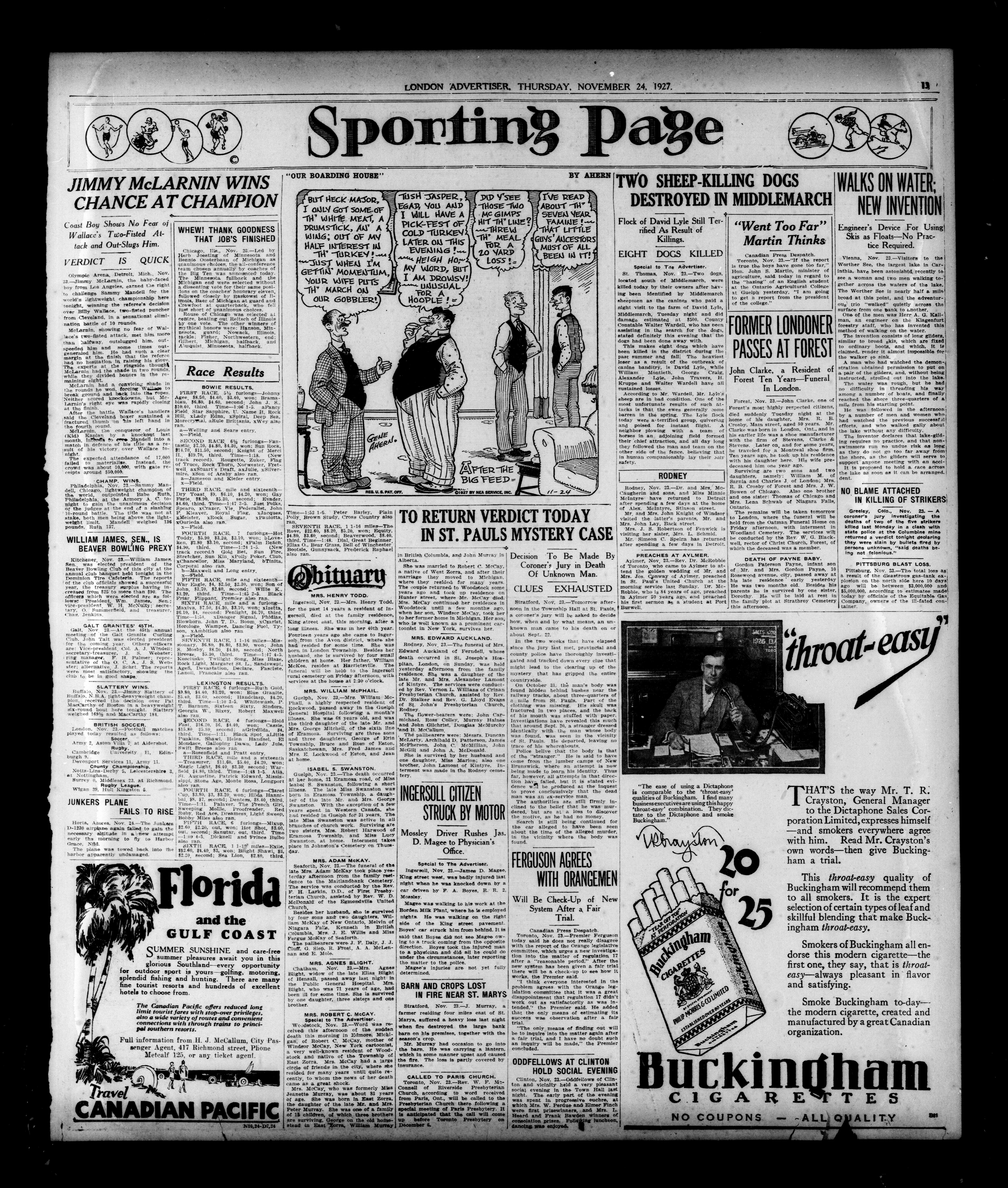 London, Ontario : London Advertiser Company, Limited, [1927]; 18 images, 0 avec recherche en texte intégral