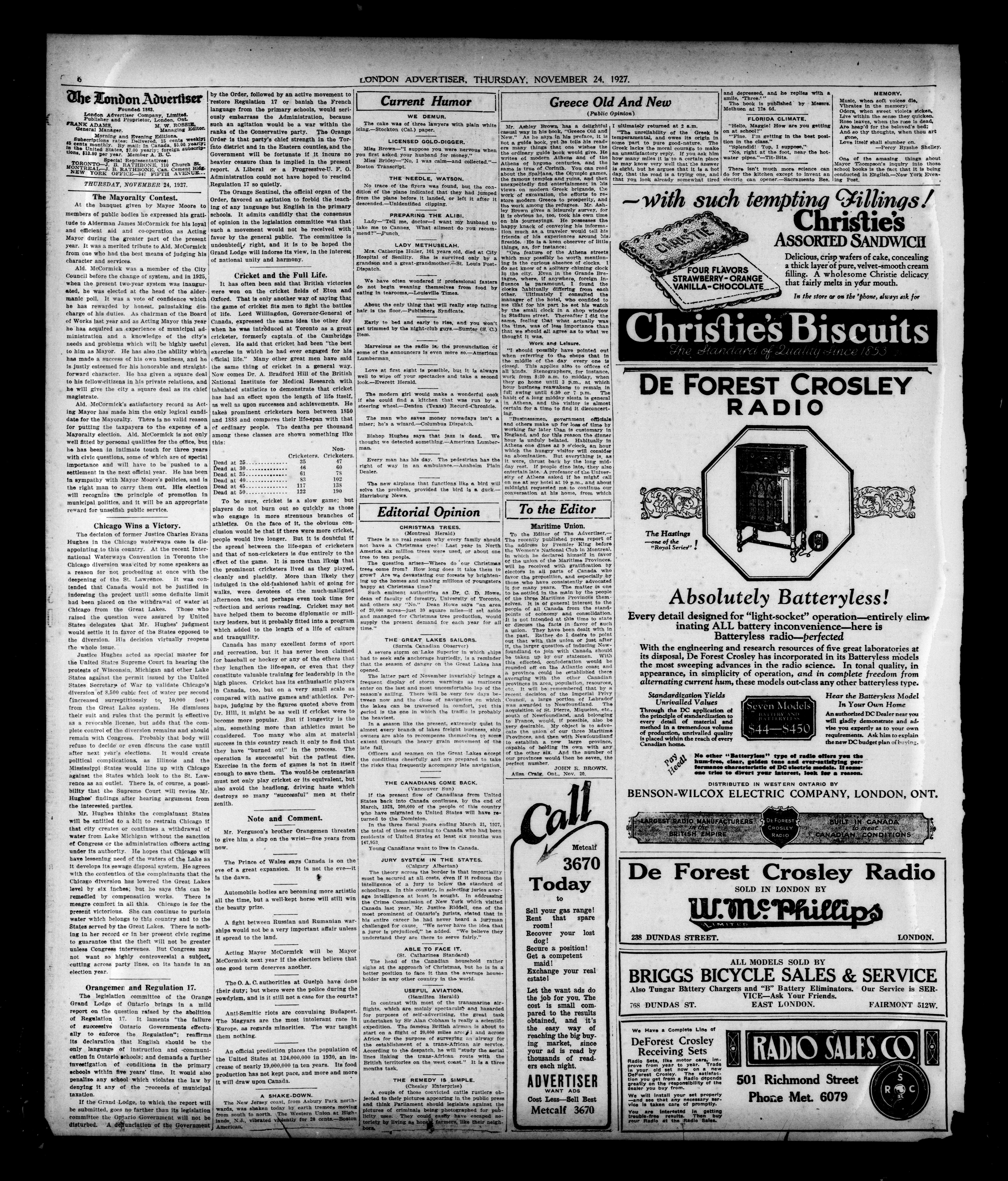London, Ontario : London Advertiser Company, Limited, [1927]; 18 images, 0 avec recherche en texte intégral