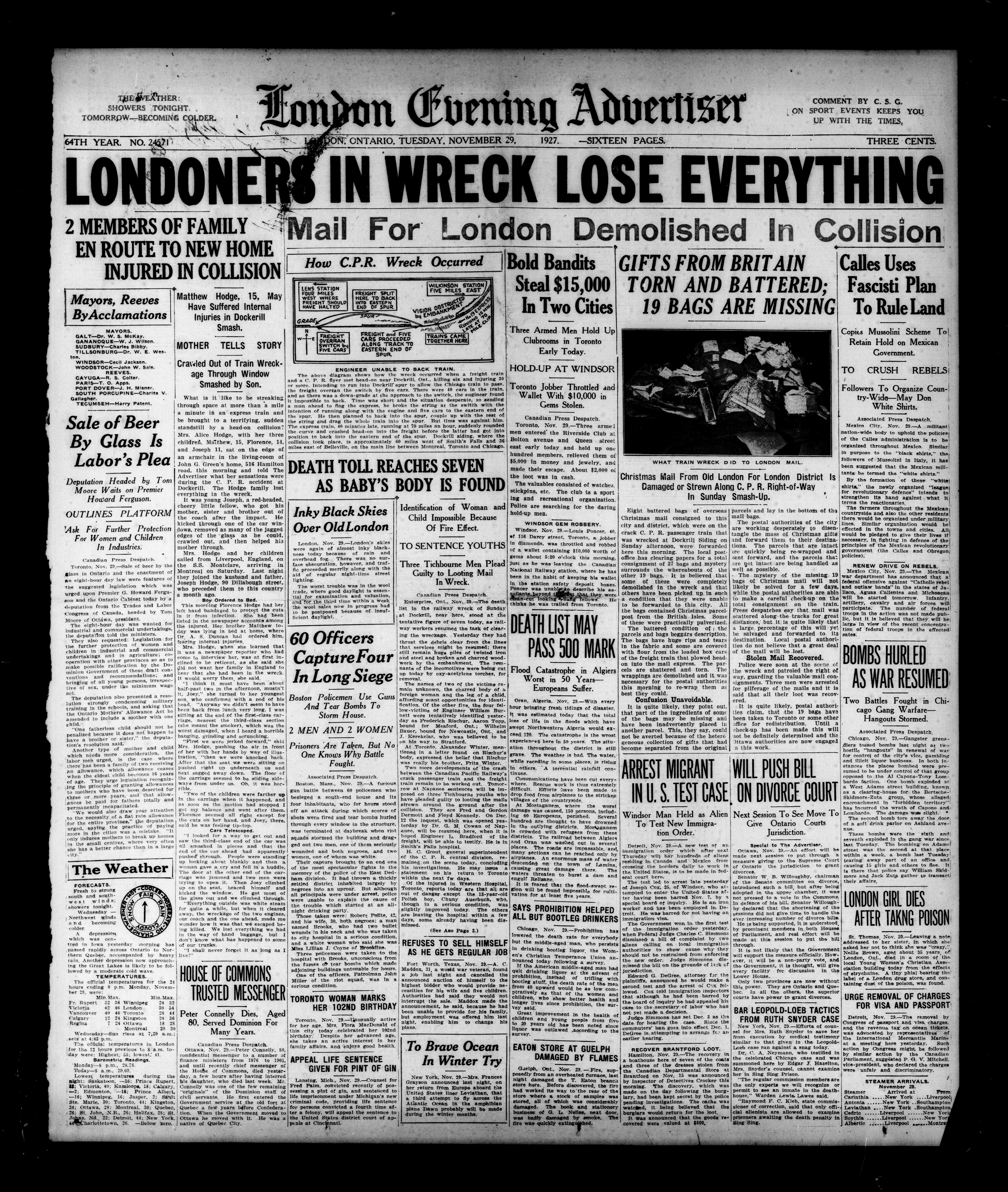 London, Ontario : London Advertiser Company, Limited, [1927]; 16 images, 0 avec recherche en texte intégral