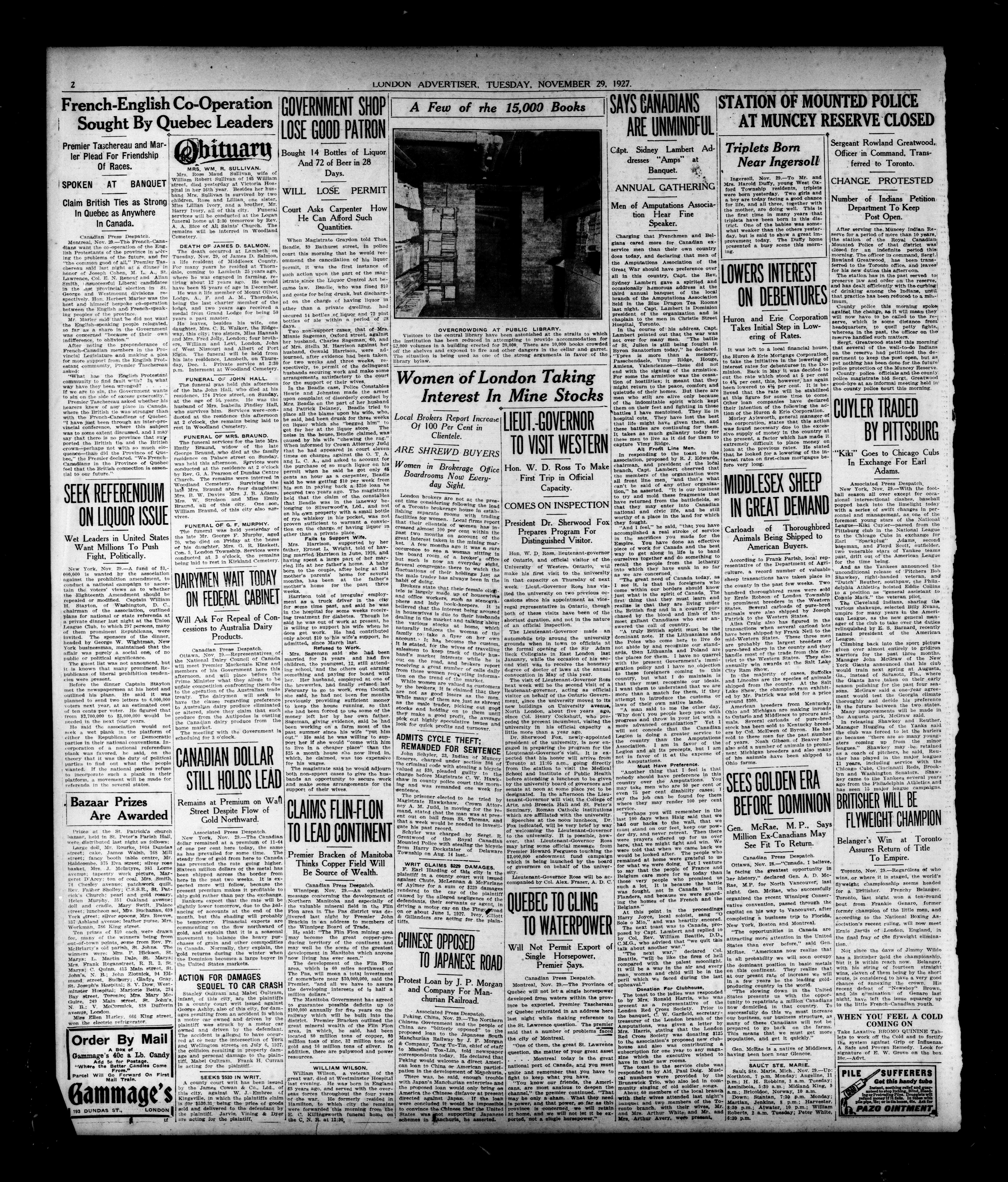 London, Ontario : London Advertiser Company, Limited, [1927]; 16 images, 0 avec recherche en texte intégral