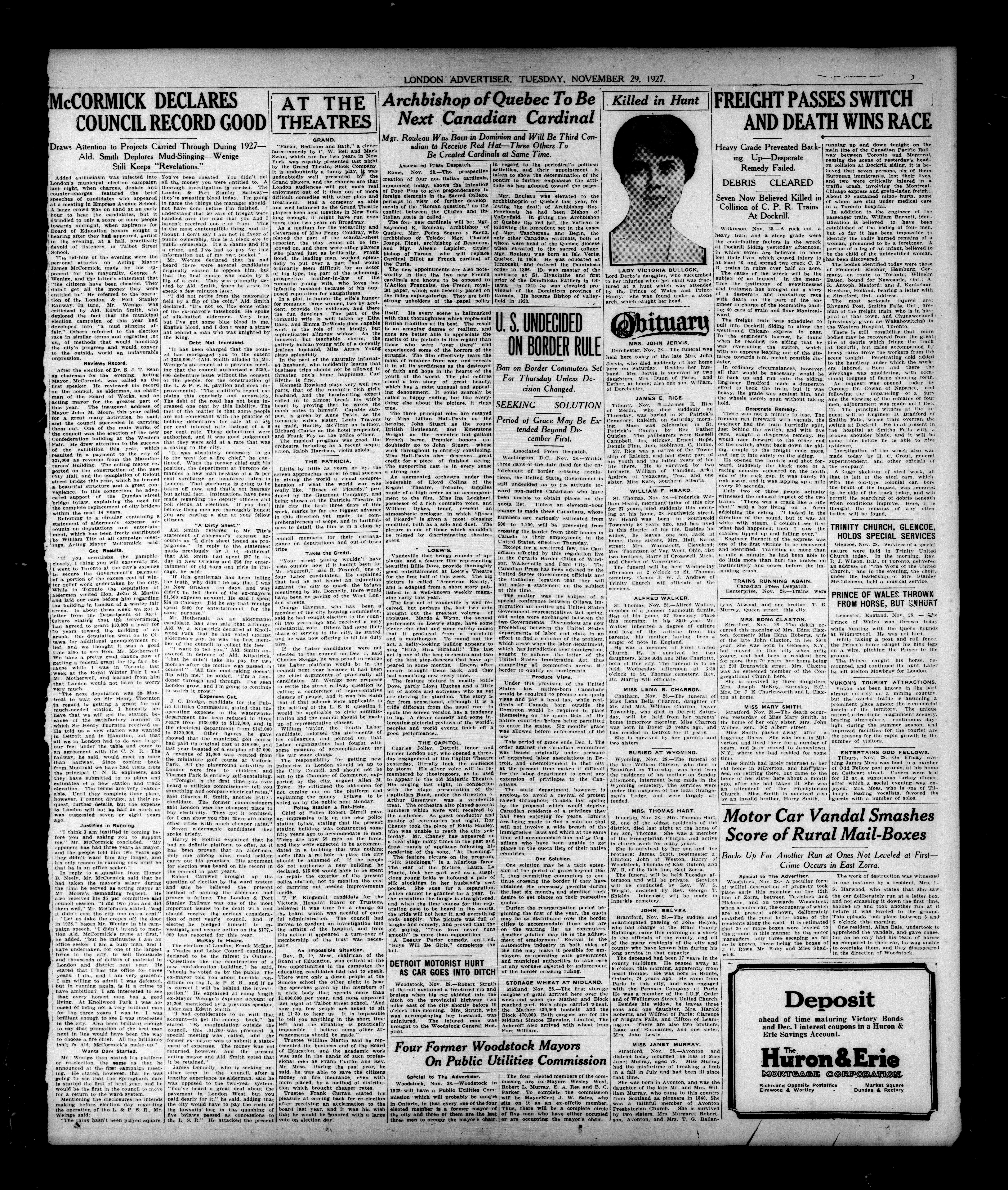 London, Ontario : London Advertiser Company, Limited, [1927]; 16 images, 0 avec recherche en texte intégral