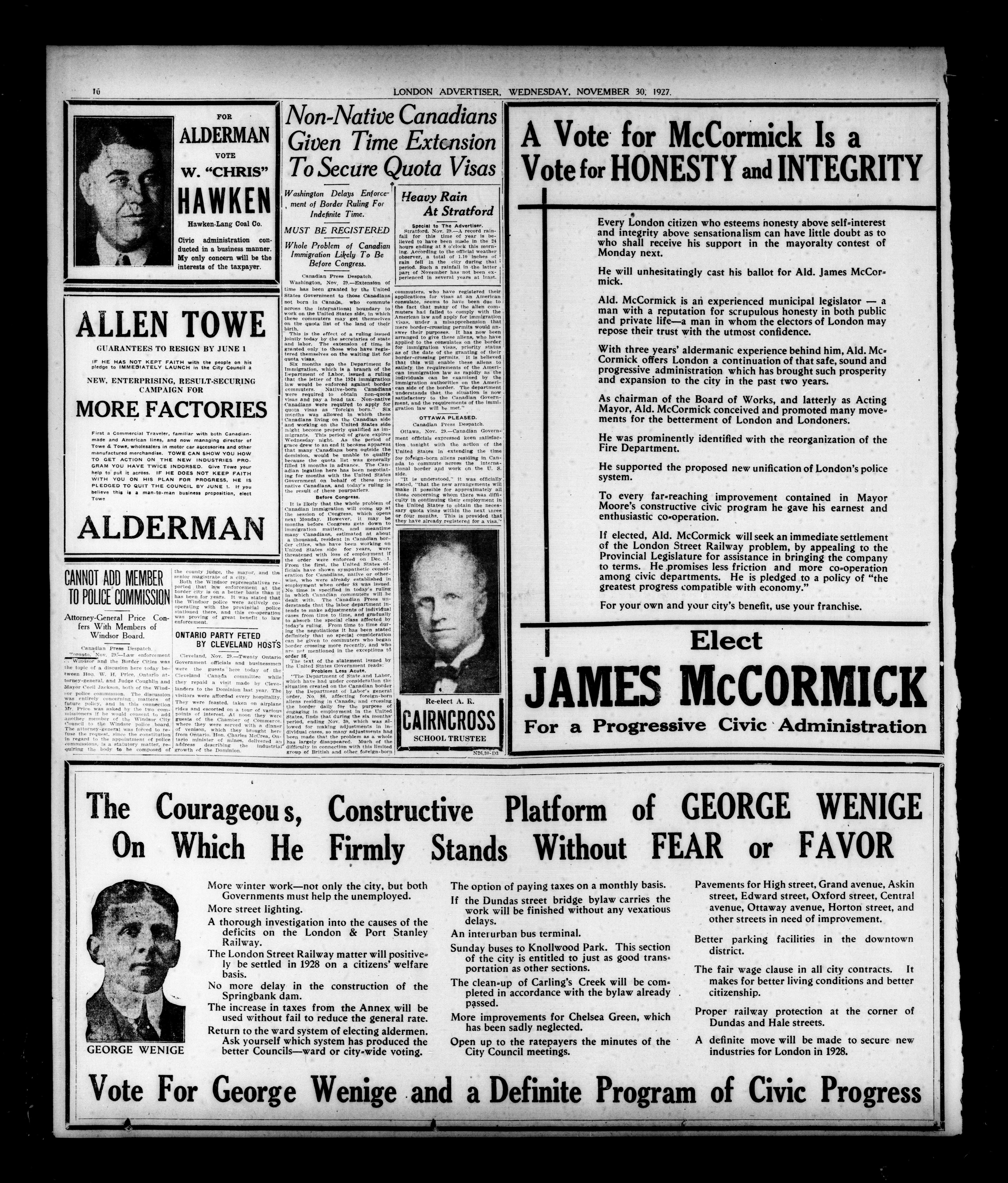 London, Ontario : London Advertiser Company, Limited, [1927]; 18 images, 0 avec recherche en texte intégral