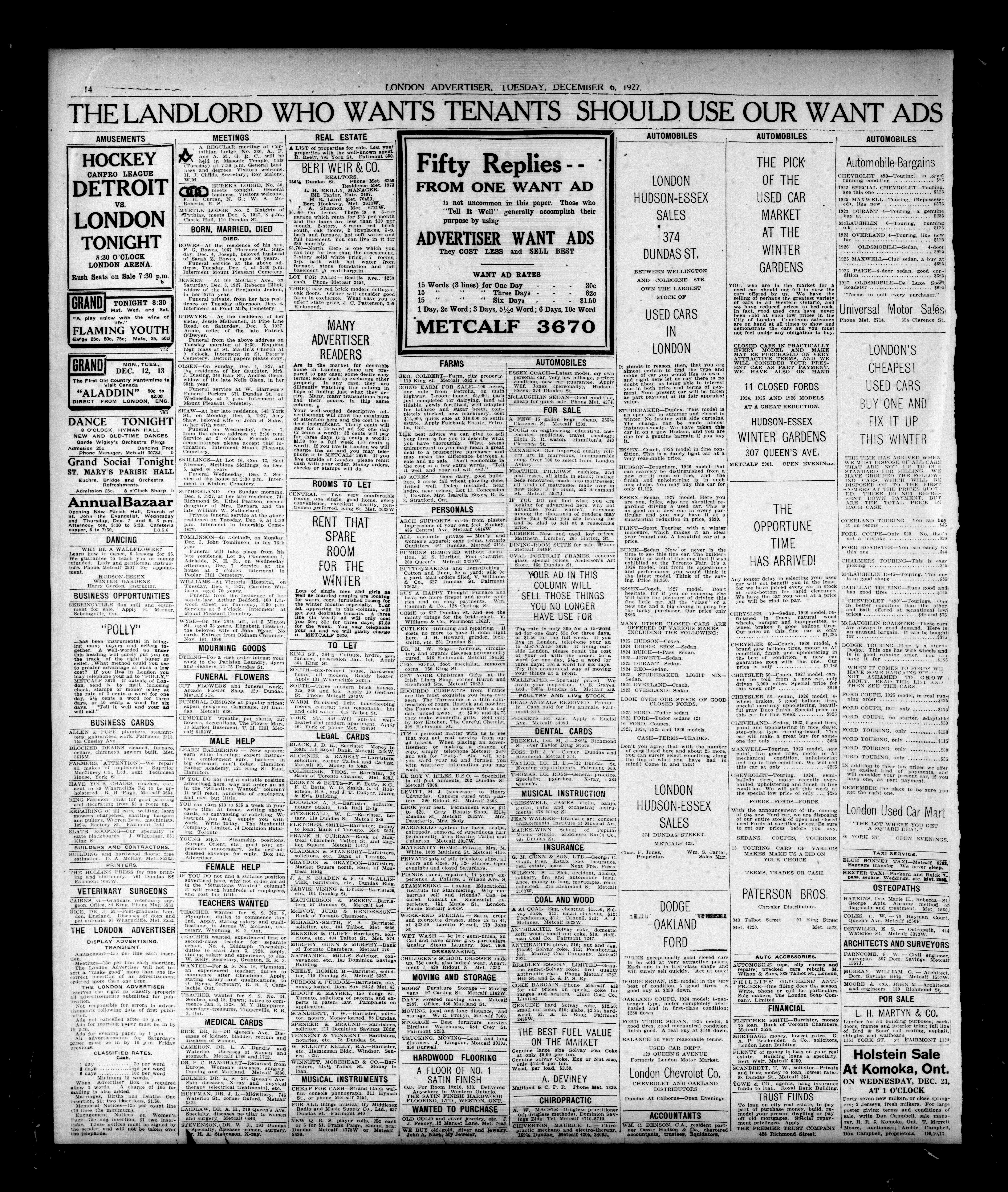 Aide London, Ontario : London Advertiser Company, Limited, [1927]; 18 images, 0 avec recherche en texte intégral