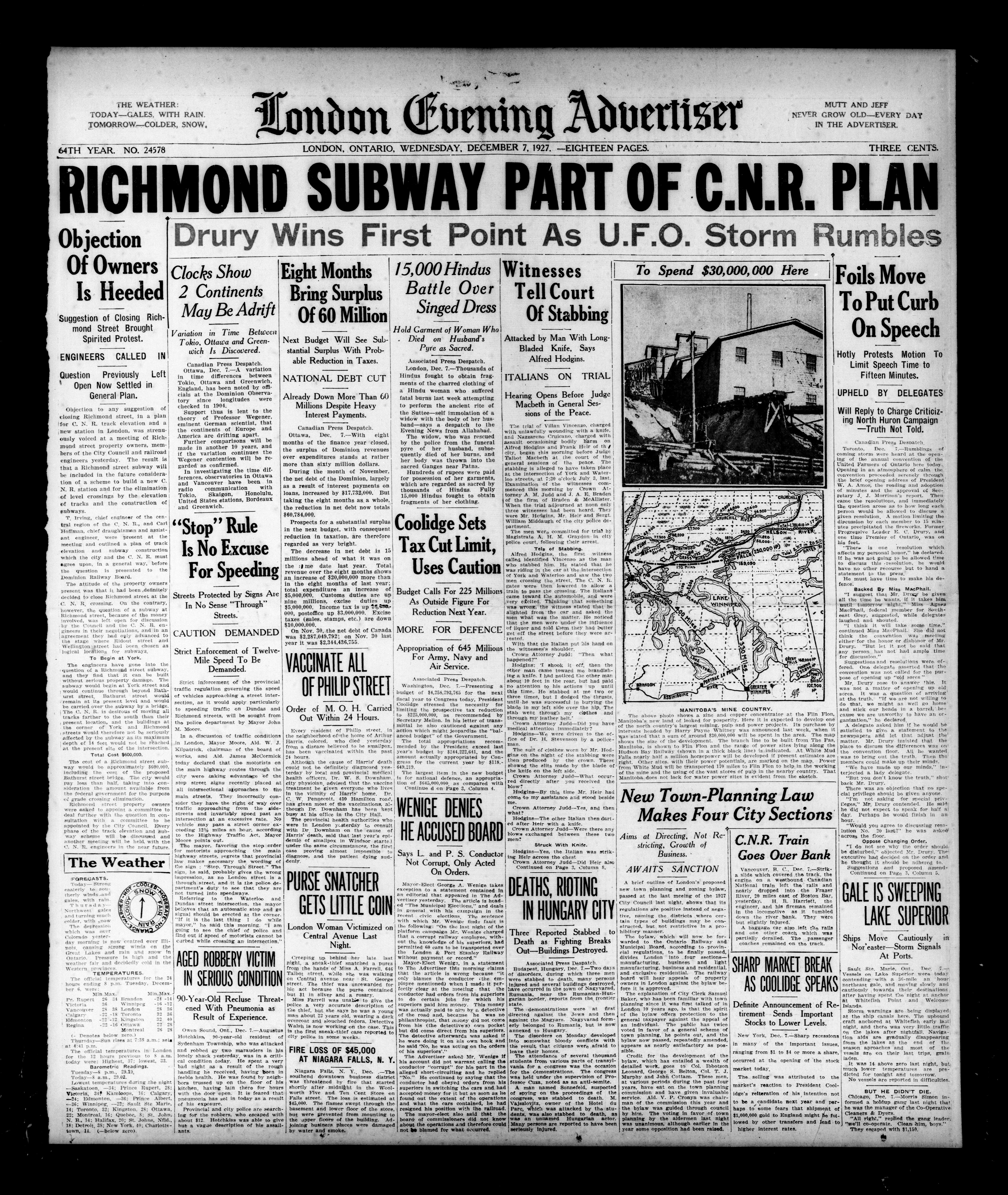 London, Ontario : London Advertiser Company, Limited, [1927]; 18 images, 0 avec recherche en texte intégral
