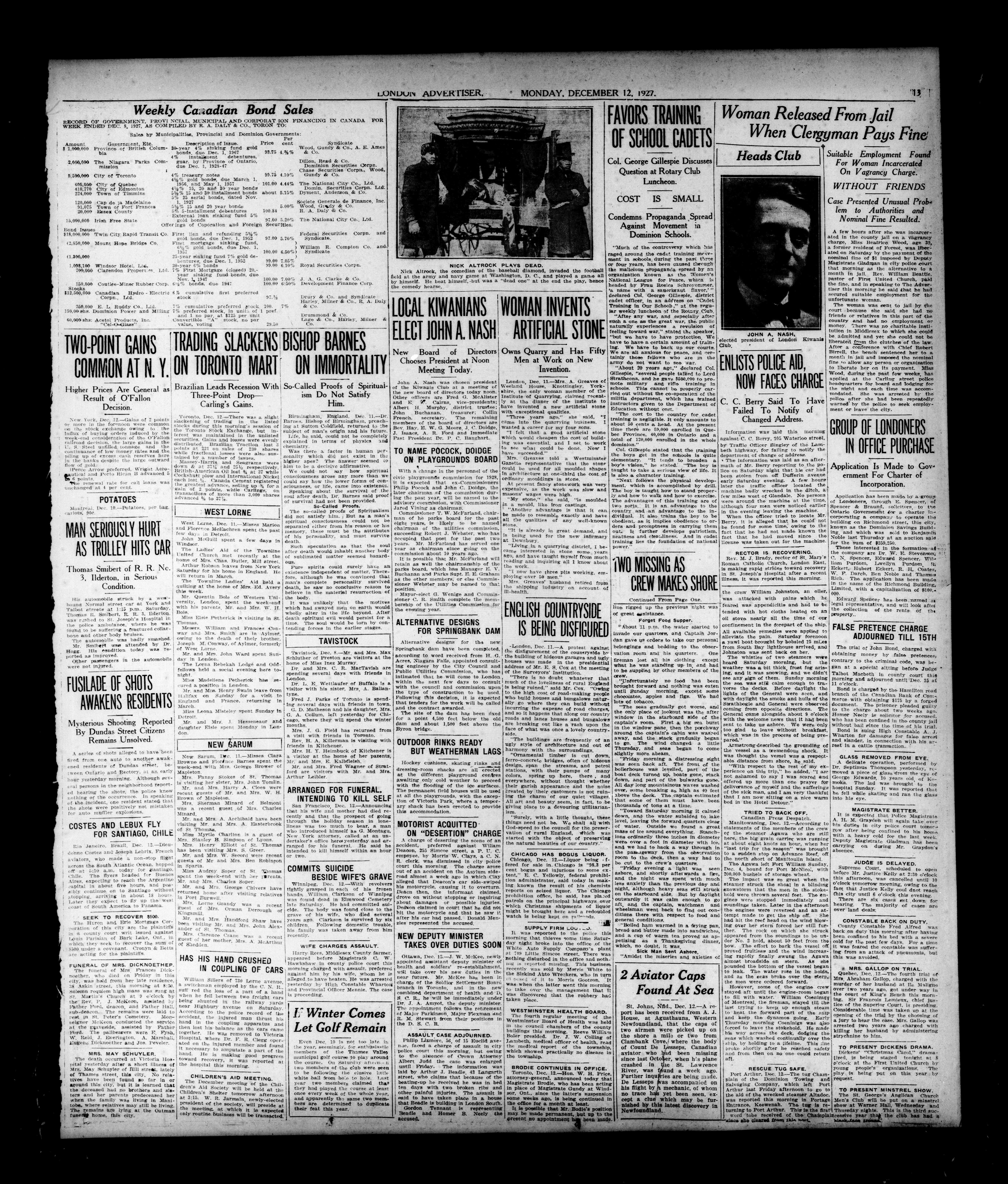 London, Ontario : London Advertiser Company, Limited, [1927]; 18 images, 0 avec recherche en texte intégral