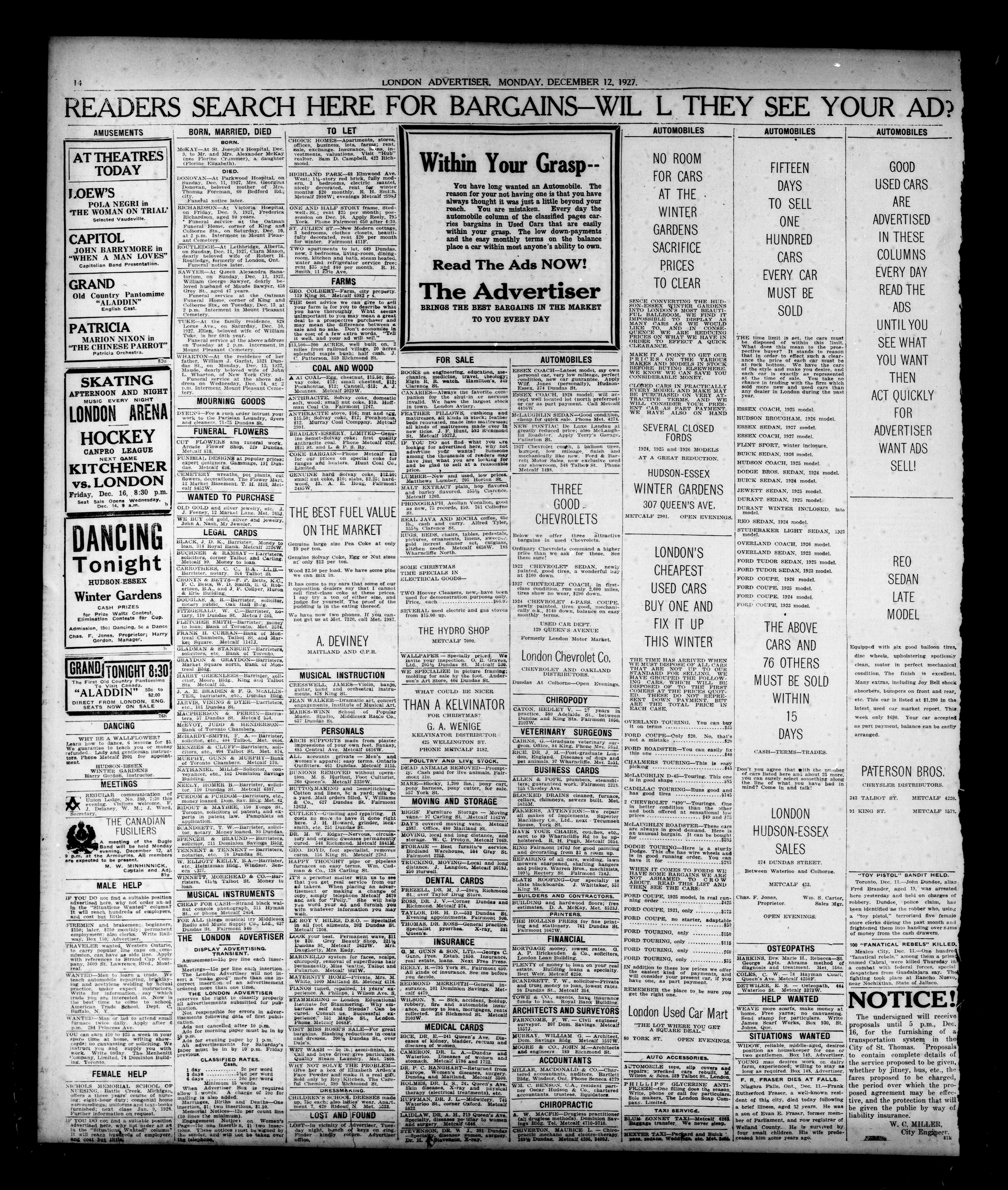London, Ontario : London Advertiser Company, Limited, [1927]; 18 images, 0 with full-text search