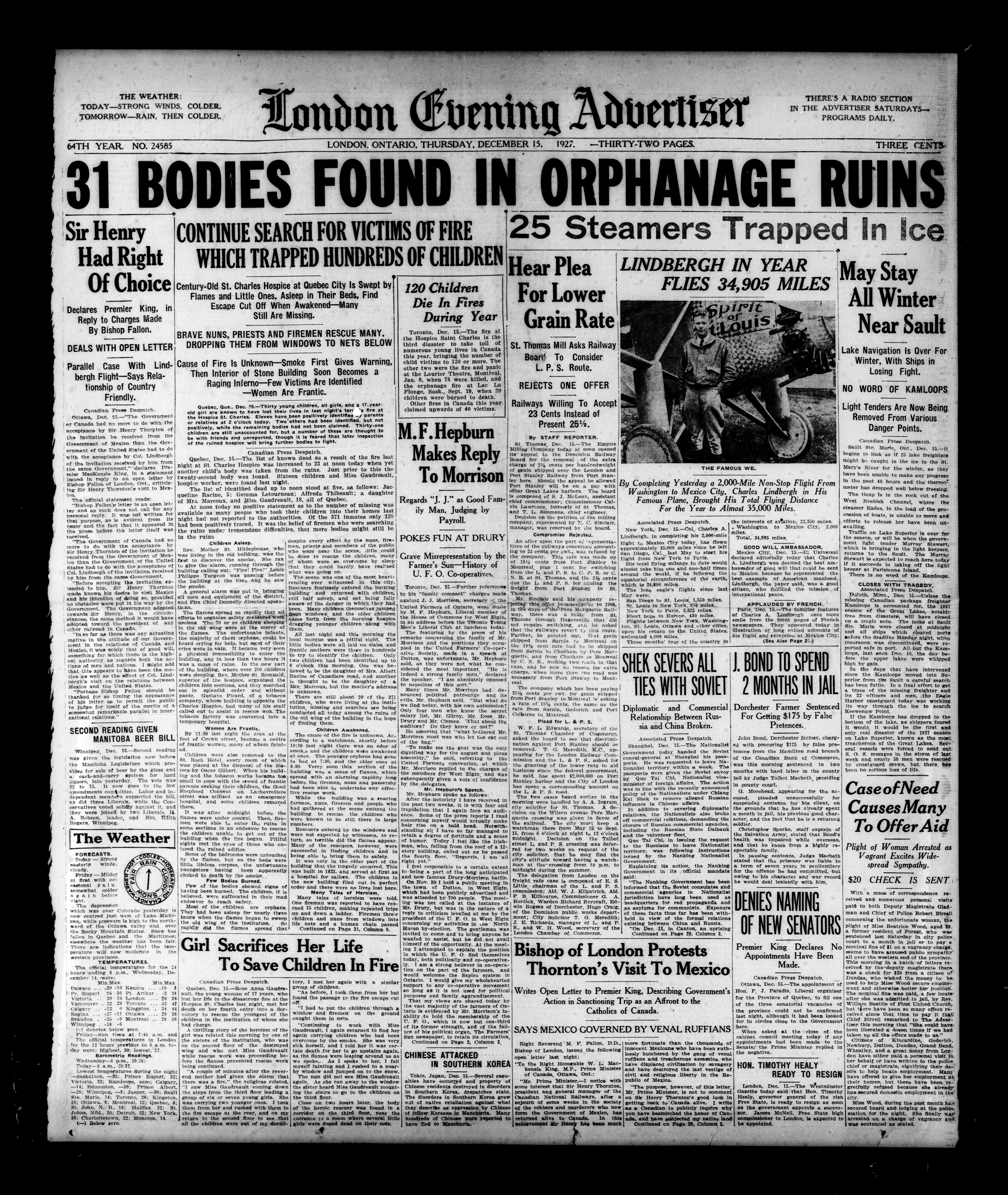 London Evening Advertiser. : London evening advertiser : 64th Year, No. 24585 (December 15, 1927)
