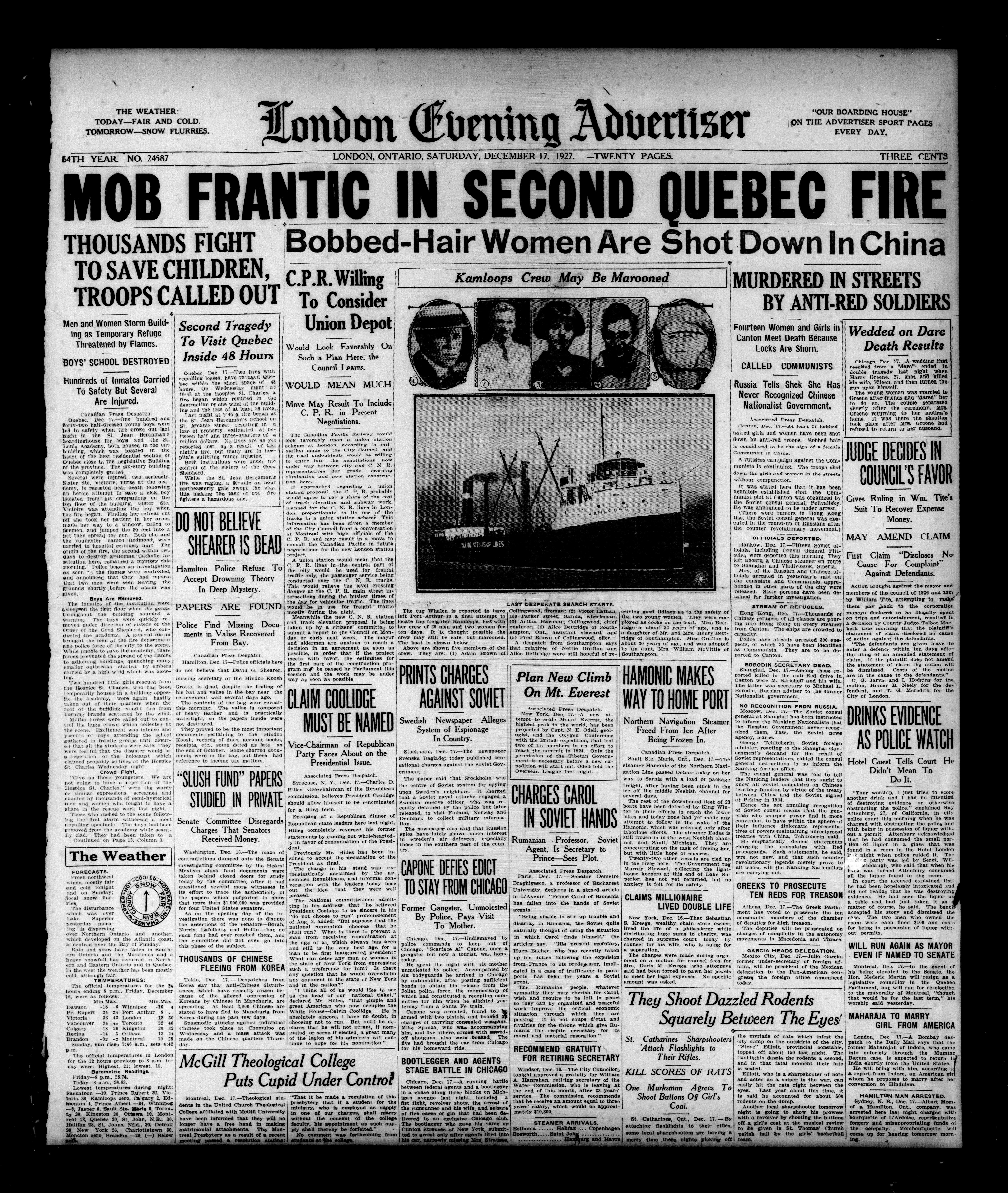 London Evening Advertiser. : London evening advertiser : 64th Year, No. 24587 (December 17, 1927)