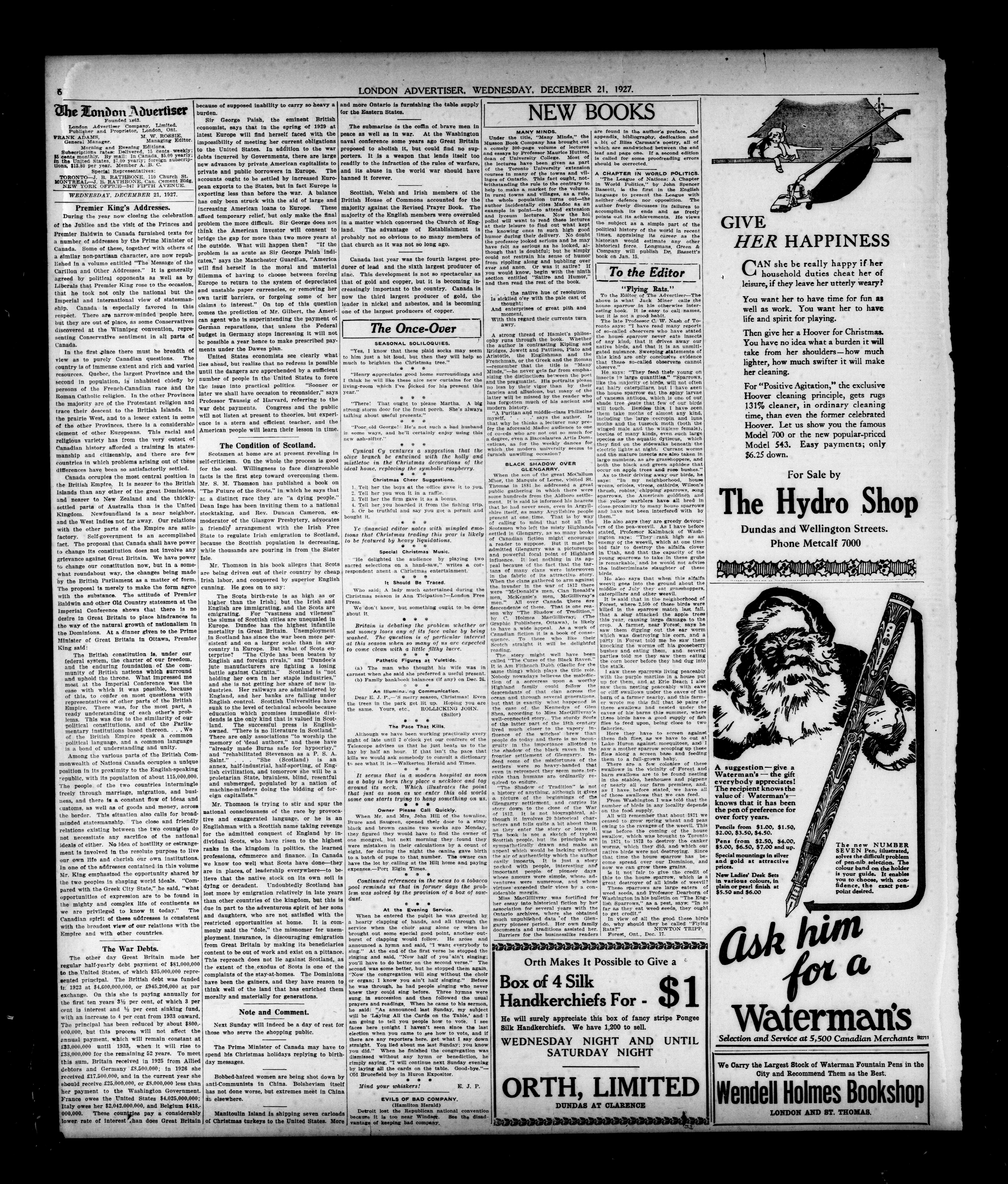 London, Ontario : London Advertiser Company, Limited, [1927]; 16 images, 0 avec recherche en texte intégral