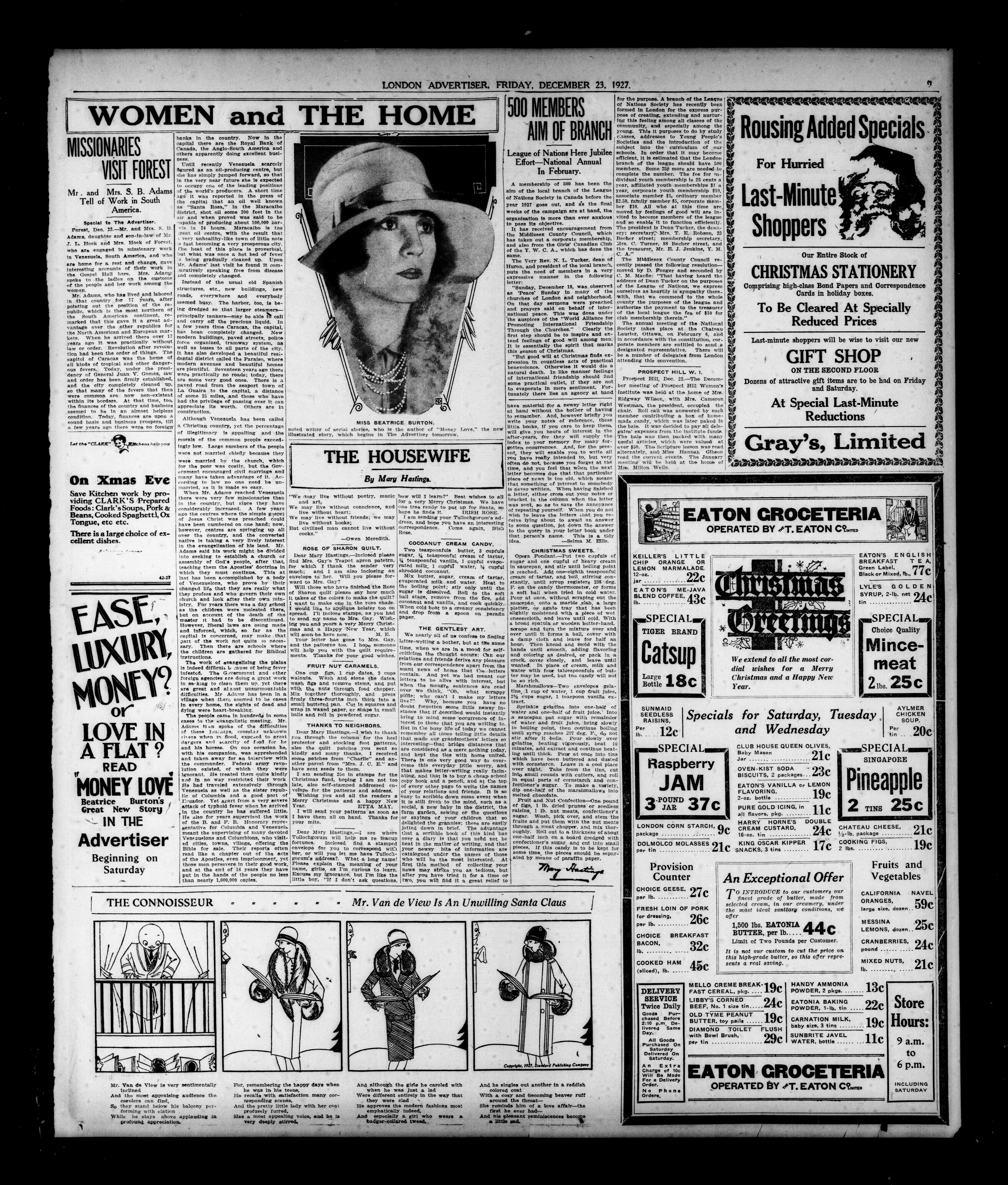 London, Ontario : London Advertiser Company, Limited, [1927]; 20 images, 0 avec recherche en texte intégral