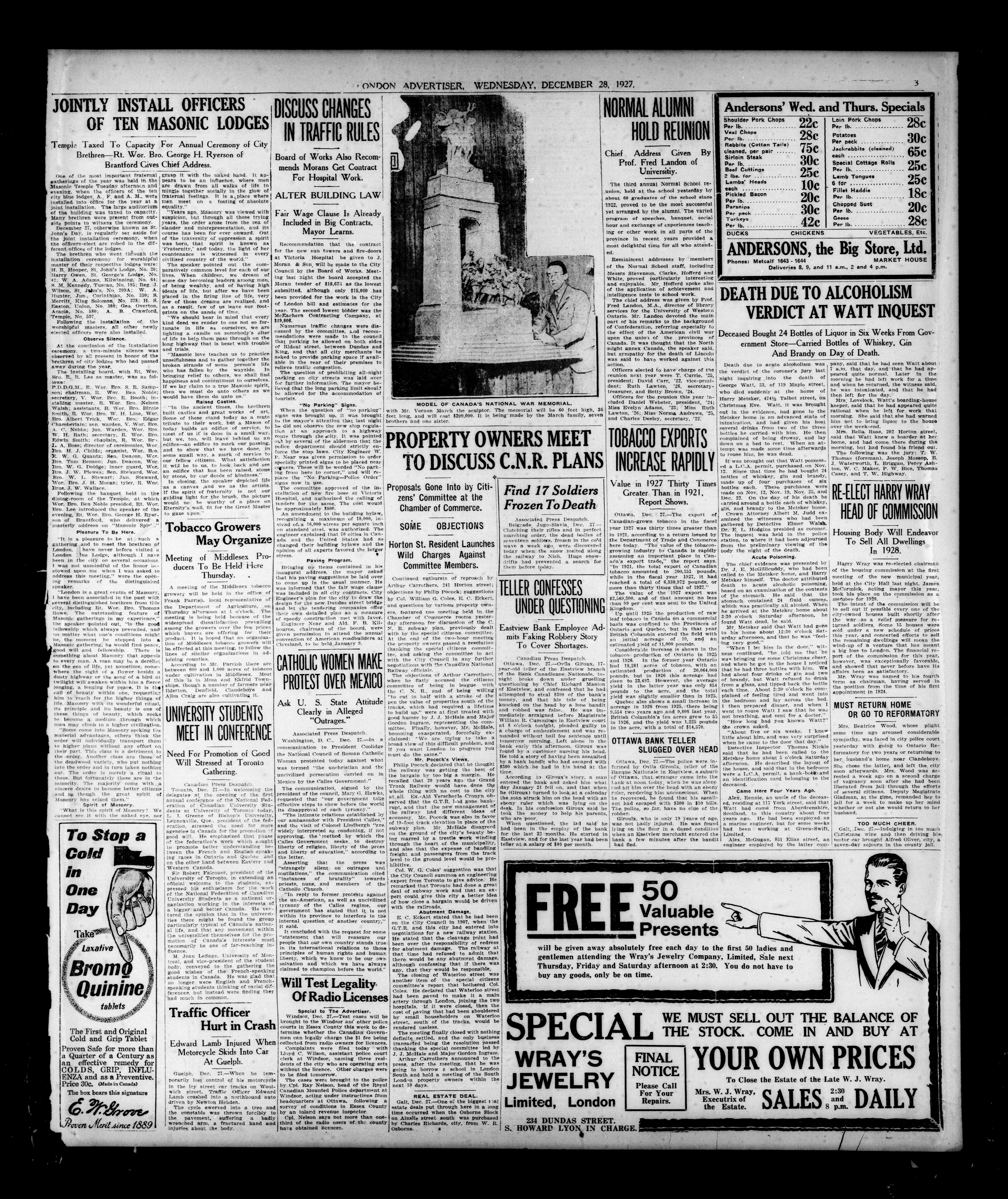 Aide London, Ontario : London Advertiser Company, Limited, [1927]; 14 images, 0 avec recherche en texte intégral