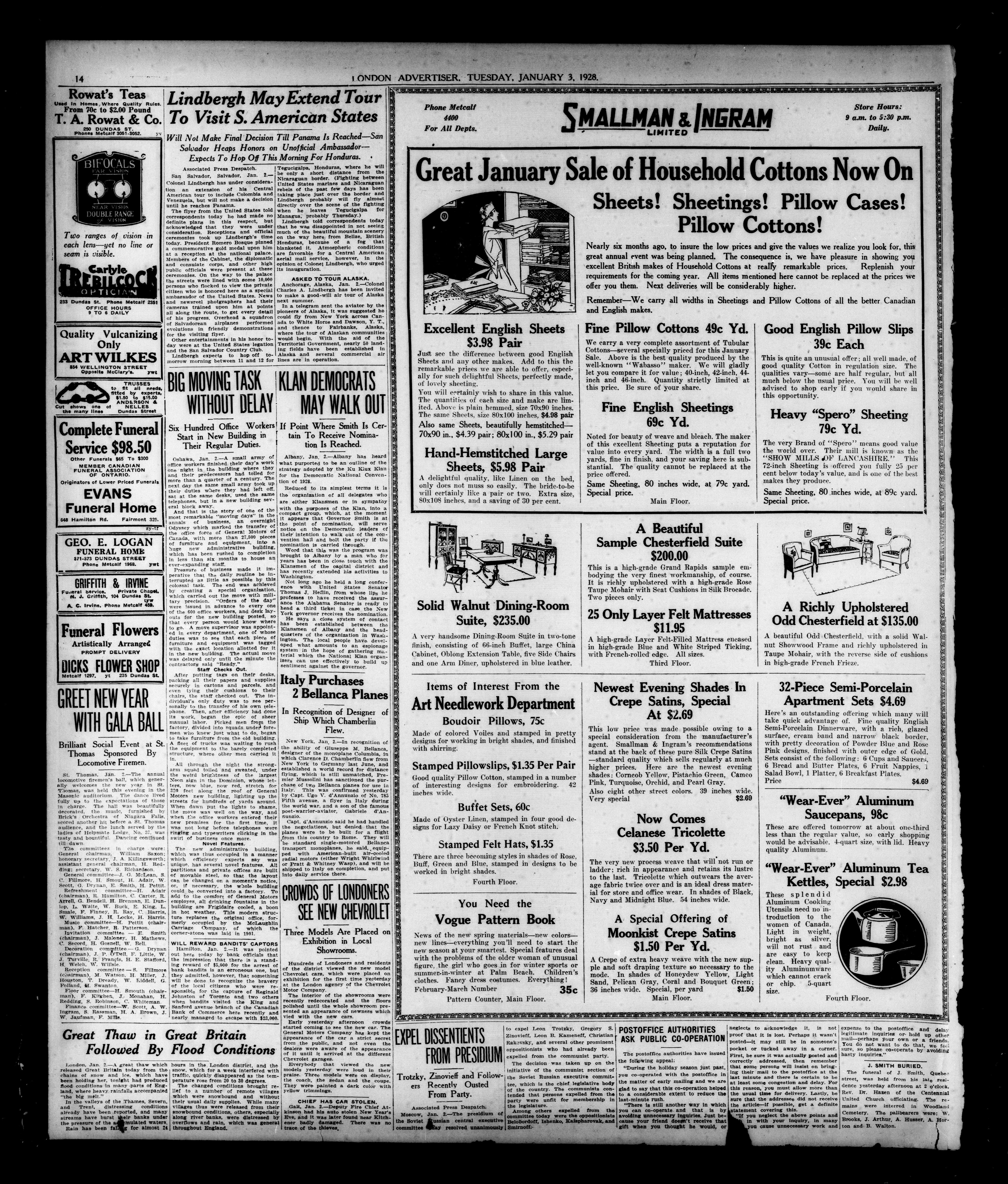 London Evening Advertiser. : London evening advertiser : 64th Year, No. 24601 (January 3, 1928)