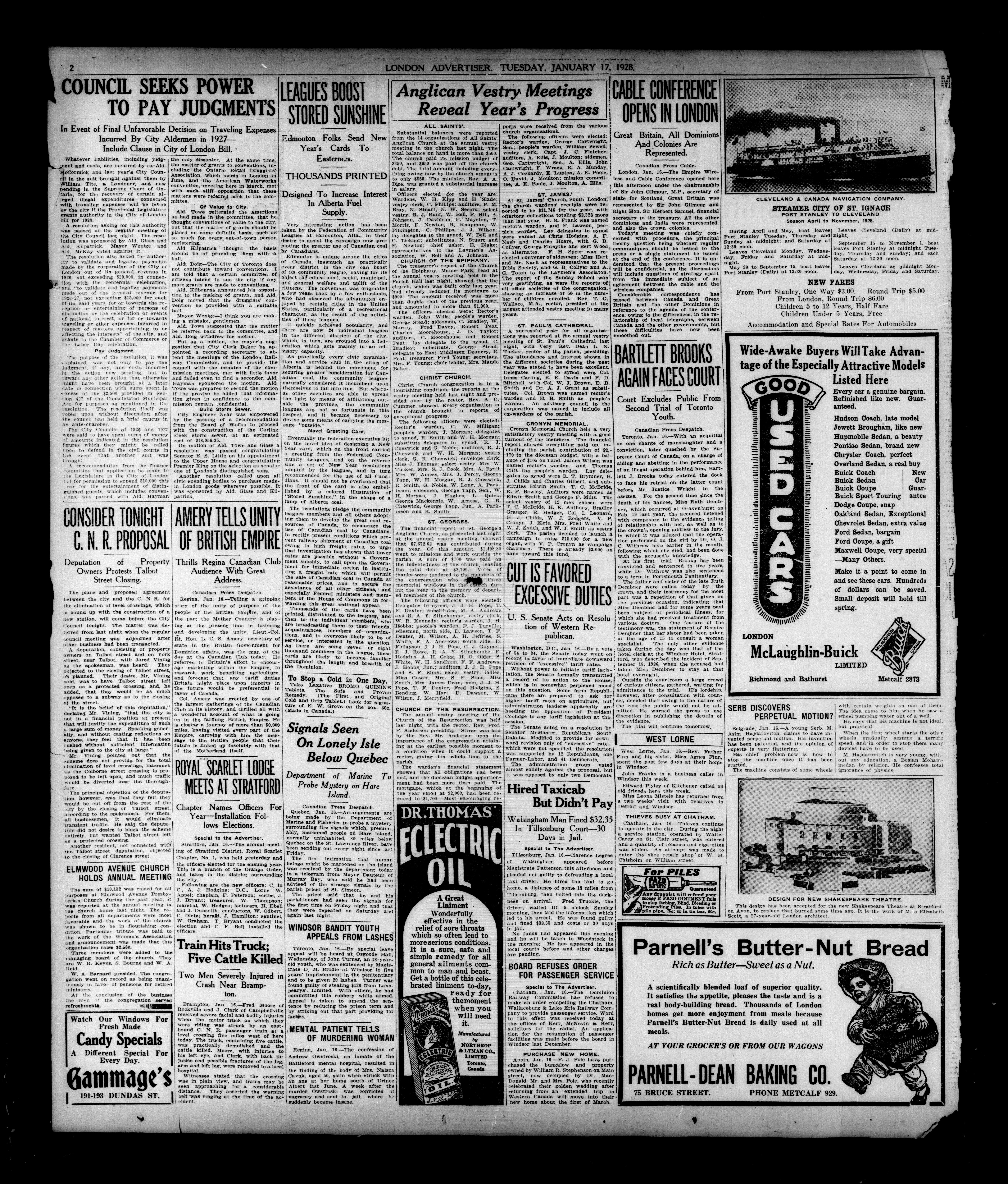 London, Ontario : London Advertiser Company, Limited, [1928]; 16 images, 0 avec recherche en texte intégral