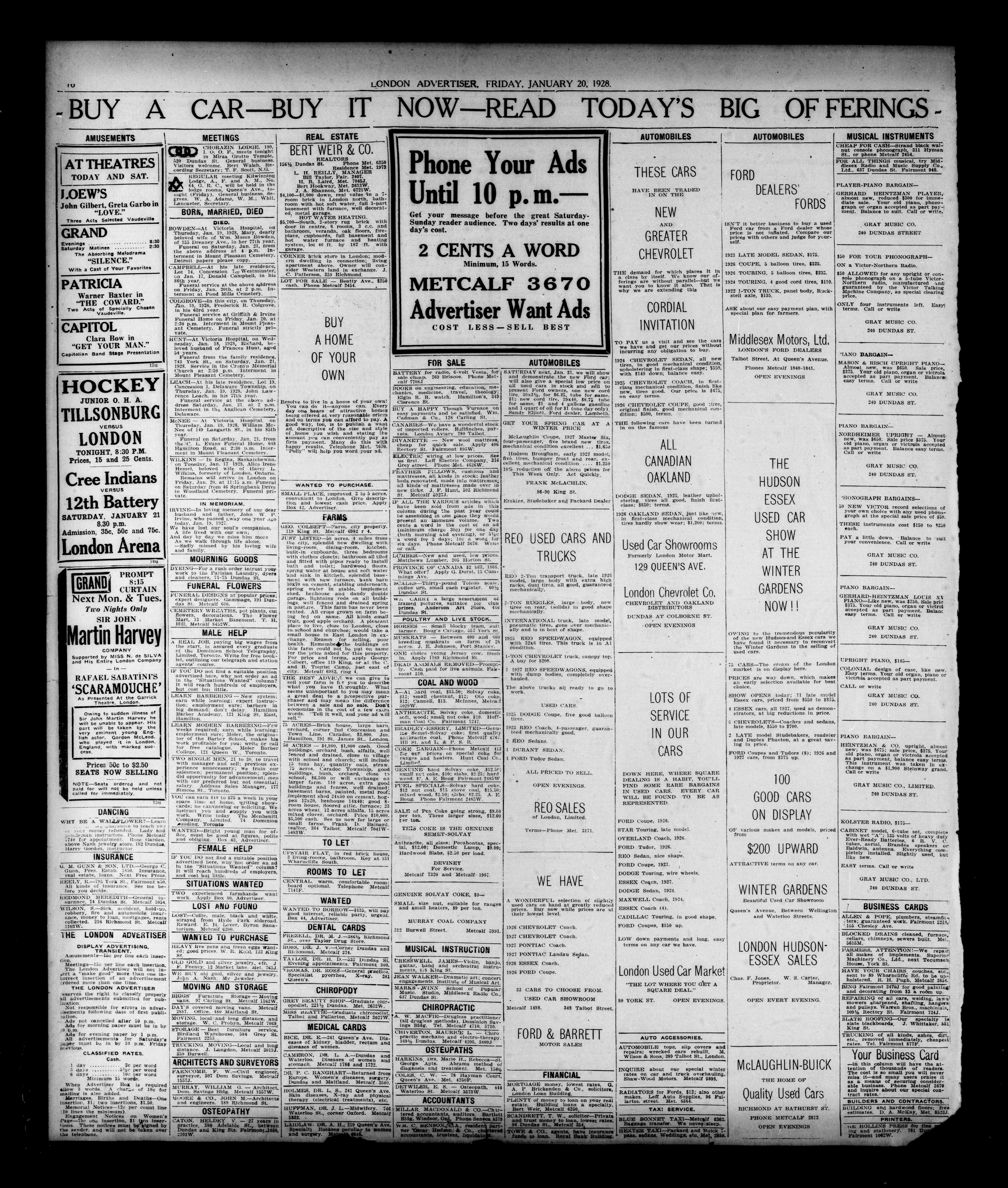 Aide London, Ontario : London Advertiser Company, Limited, [1928]; 18 images, 0 avec recherche en texte intégral
