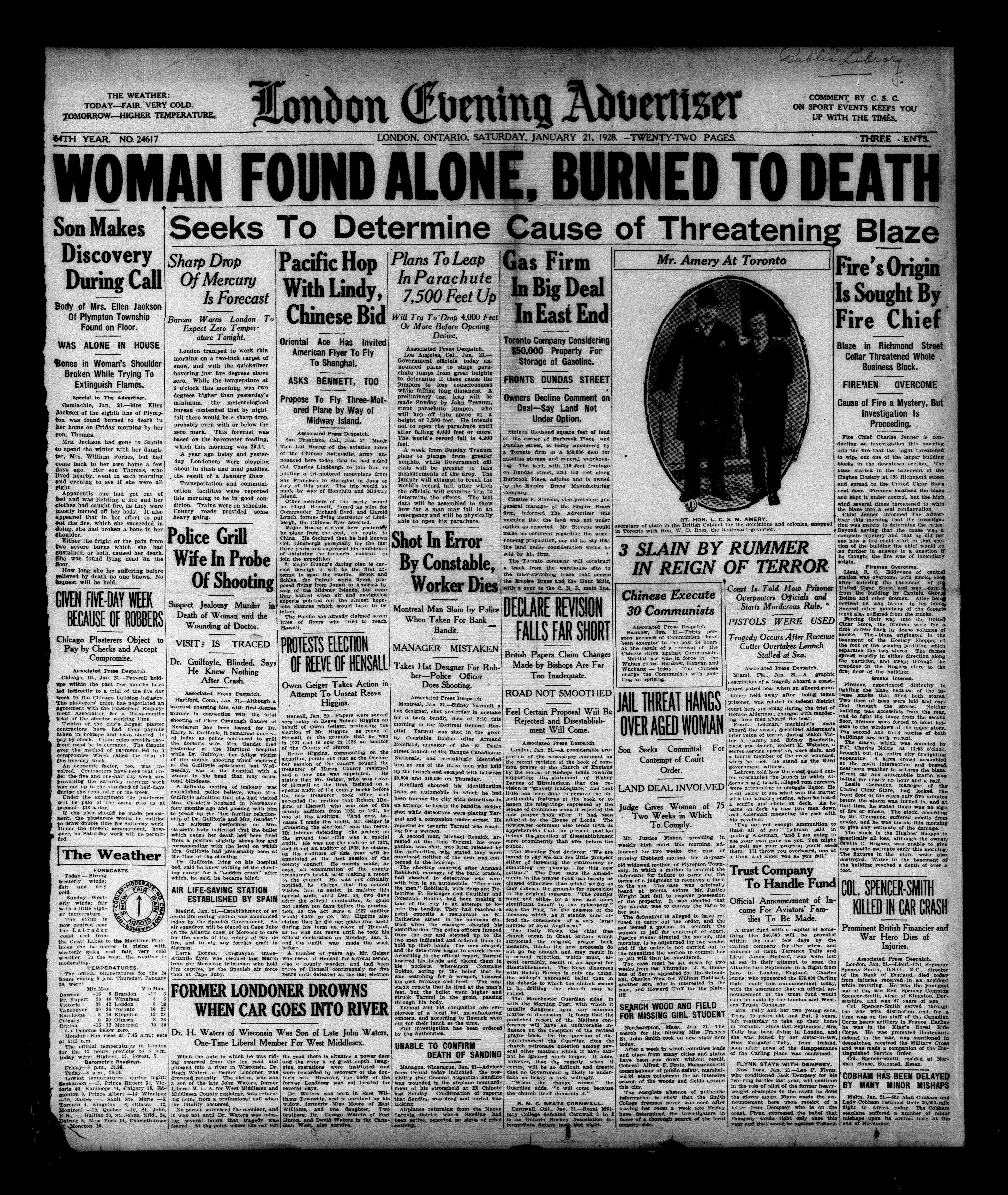 London, Ontario : London Advertiser Company, Limited, [1928]; 22 images, 0 avec recherche en texte intégral