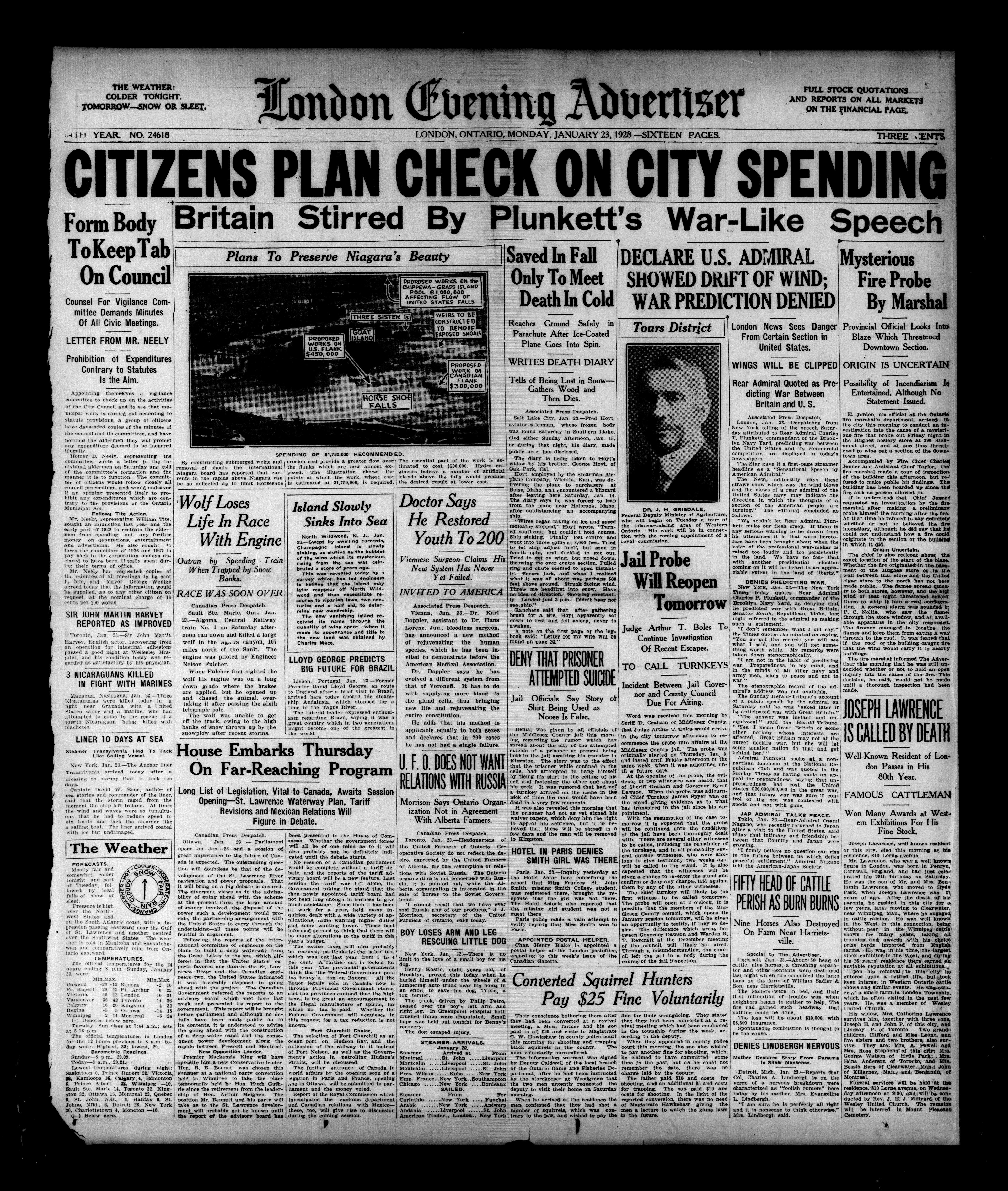 London Evening Advertiser. : London evening advertiser : 64th Year, No. 24618 (January 23, 1928)