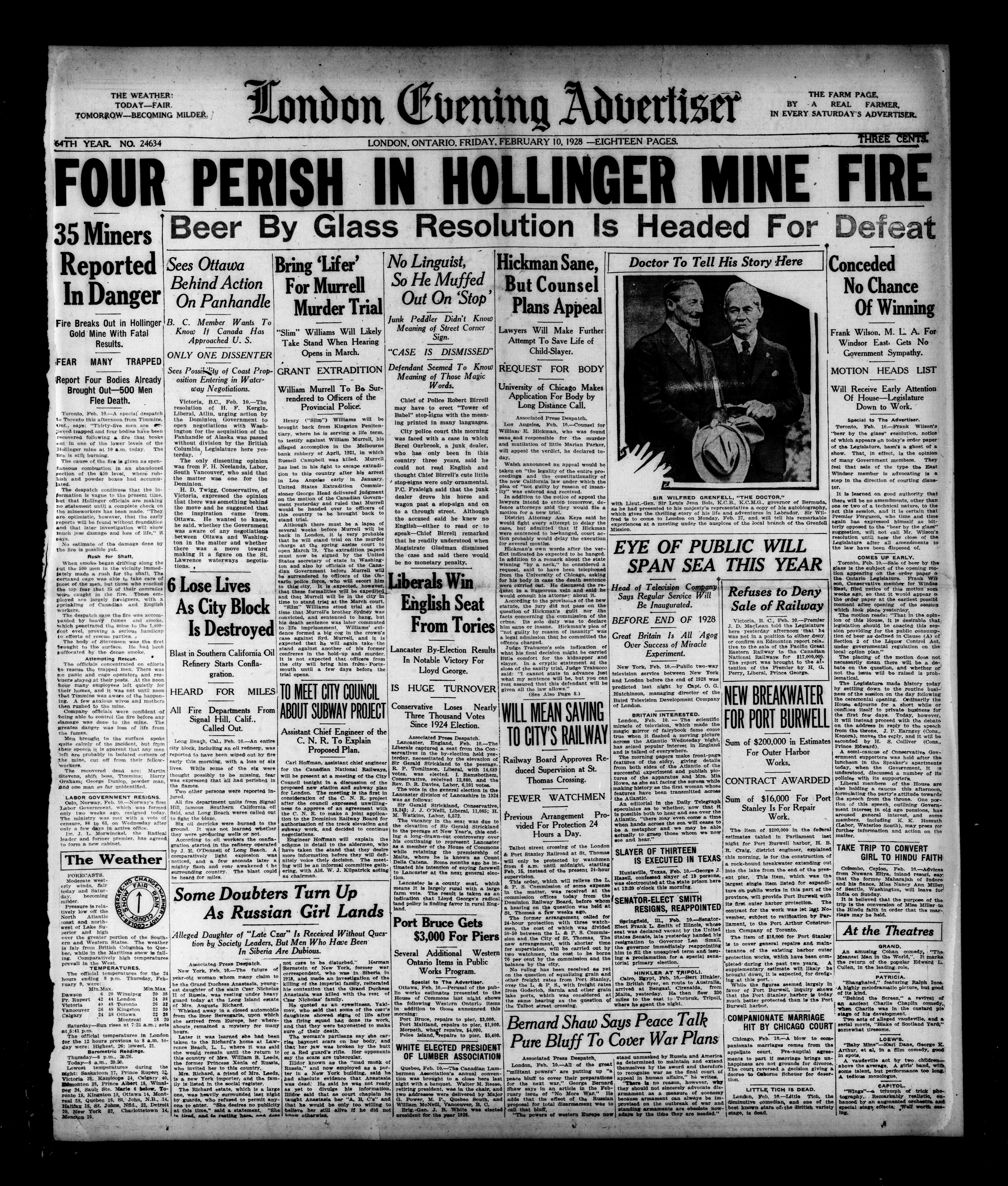 London evening advertiser : 64th Year, No. 24634 (February 10, 1928)