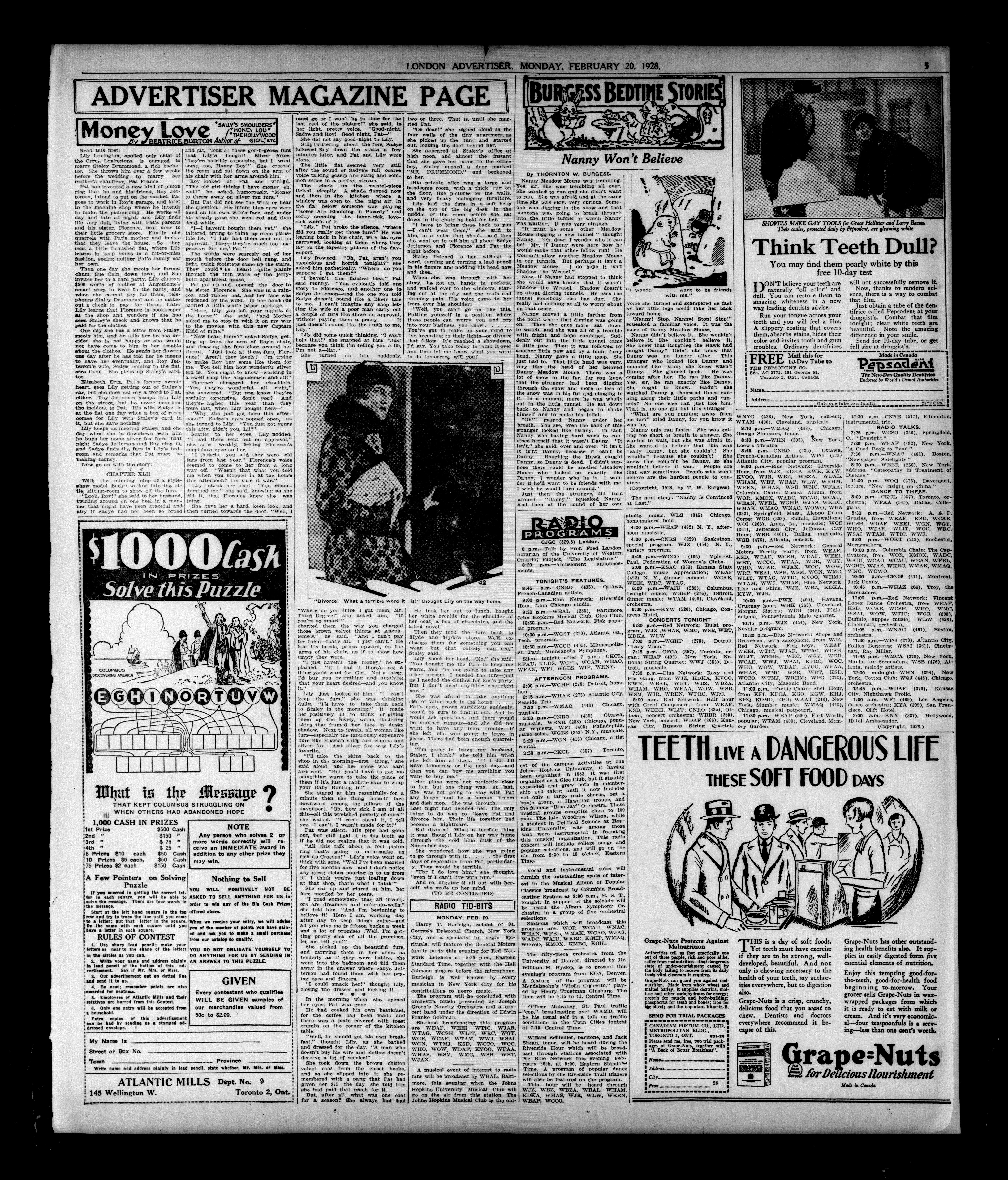 London, Ontario : London Advertiser Company, Limited, [1928]; 16 images, 0 avec recherche en texte intégral