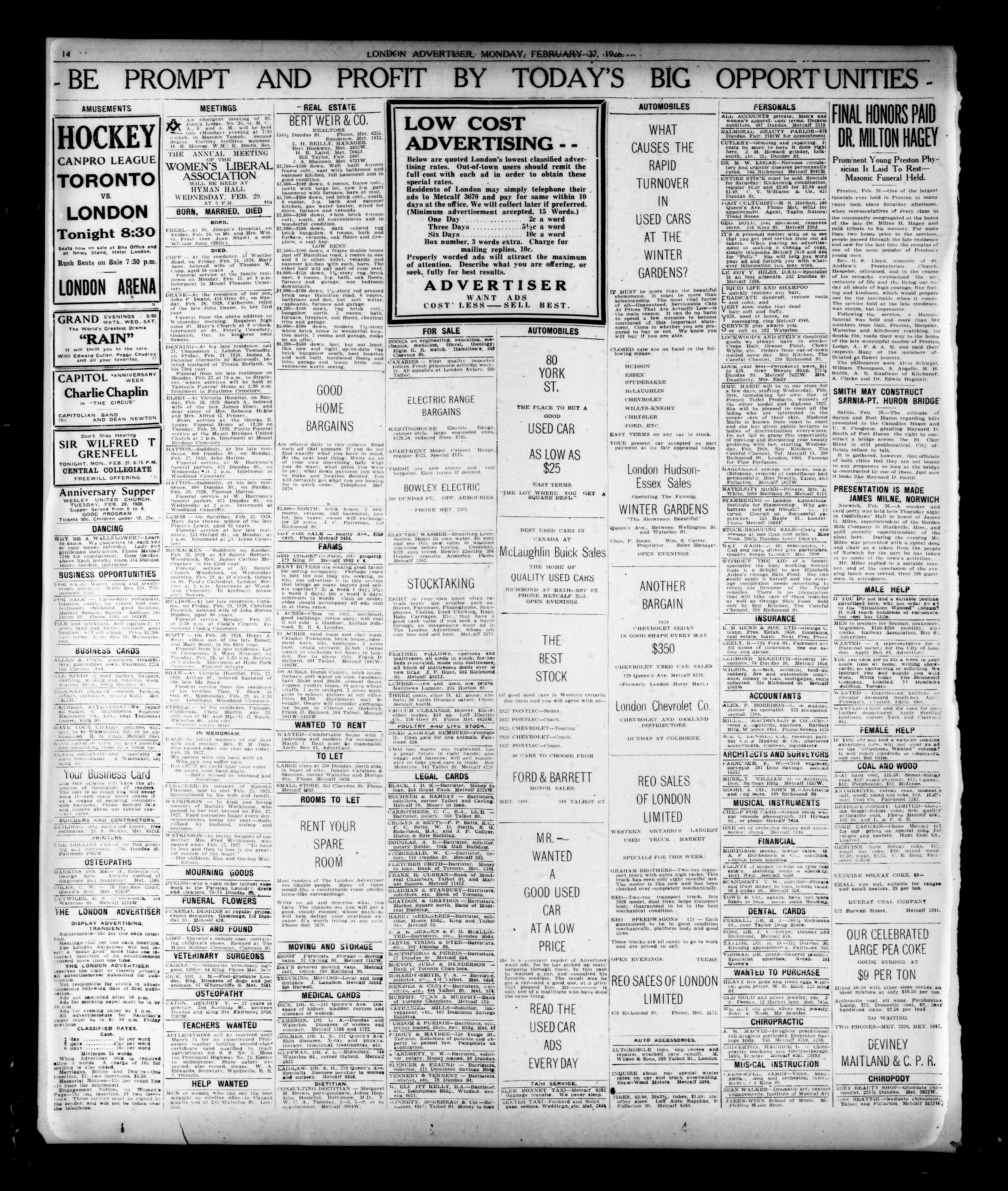 London, Ontario : London Advertiser Company, Limited, [1928]; 16 images, 0 avec recherche en texte intégral