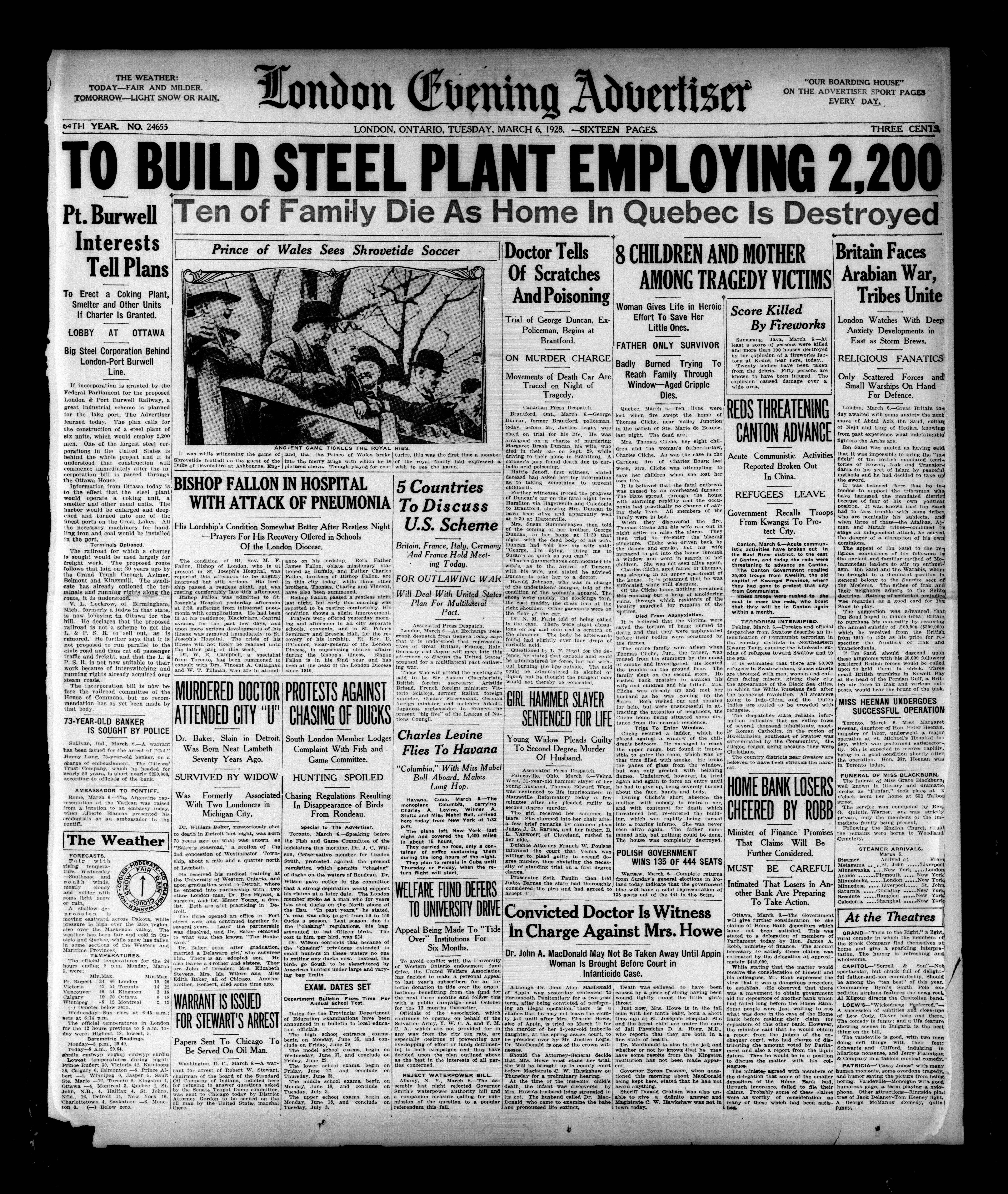 London, Ontario : London Advertiser Company, Limited, [1928]; 16 images, 0 avec recherche en texte intégral