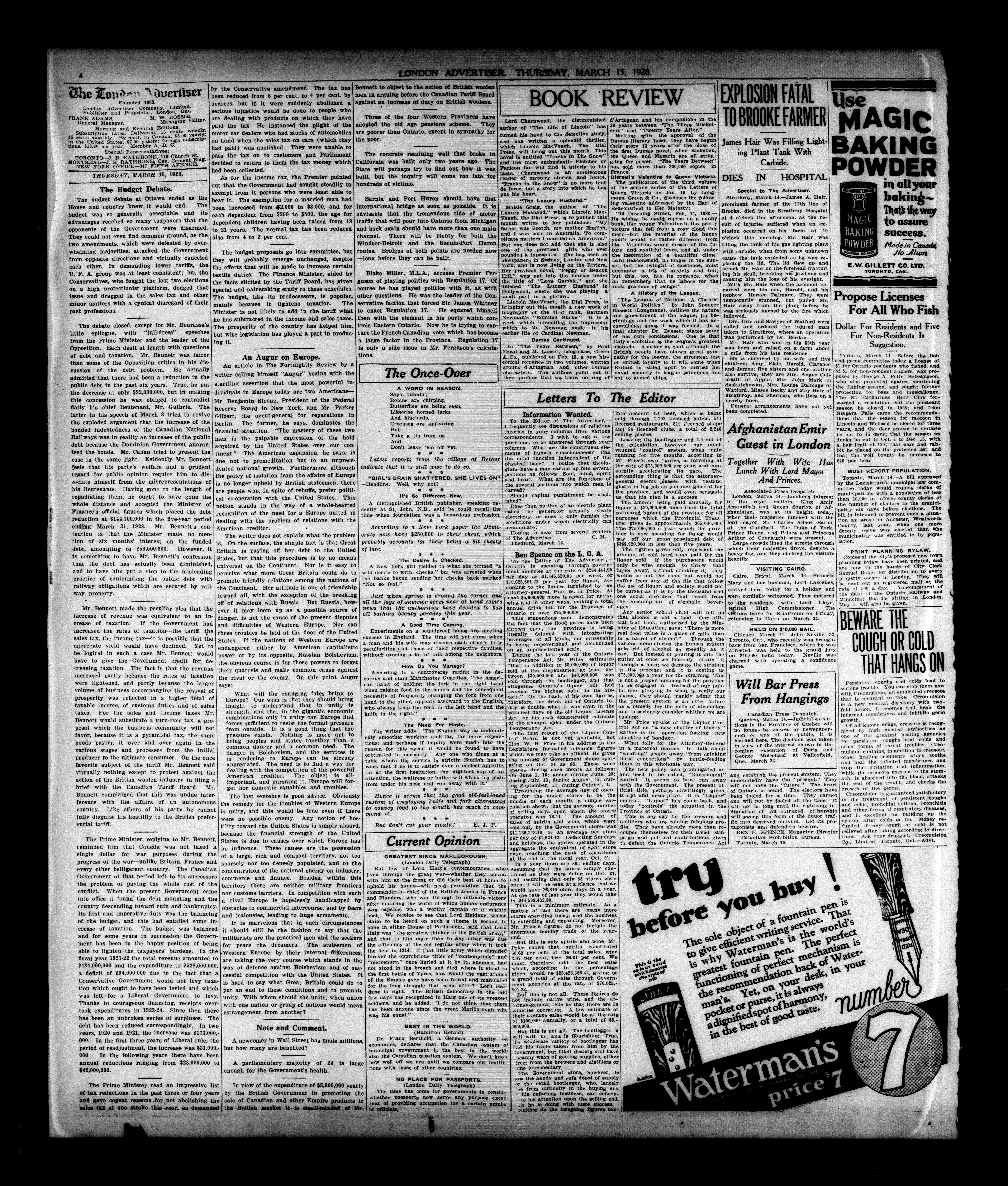 Aide London, Ontario : London Advertiser Company, Limited, [1928]; 18 images, 0 avec recherche en texte intégral