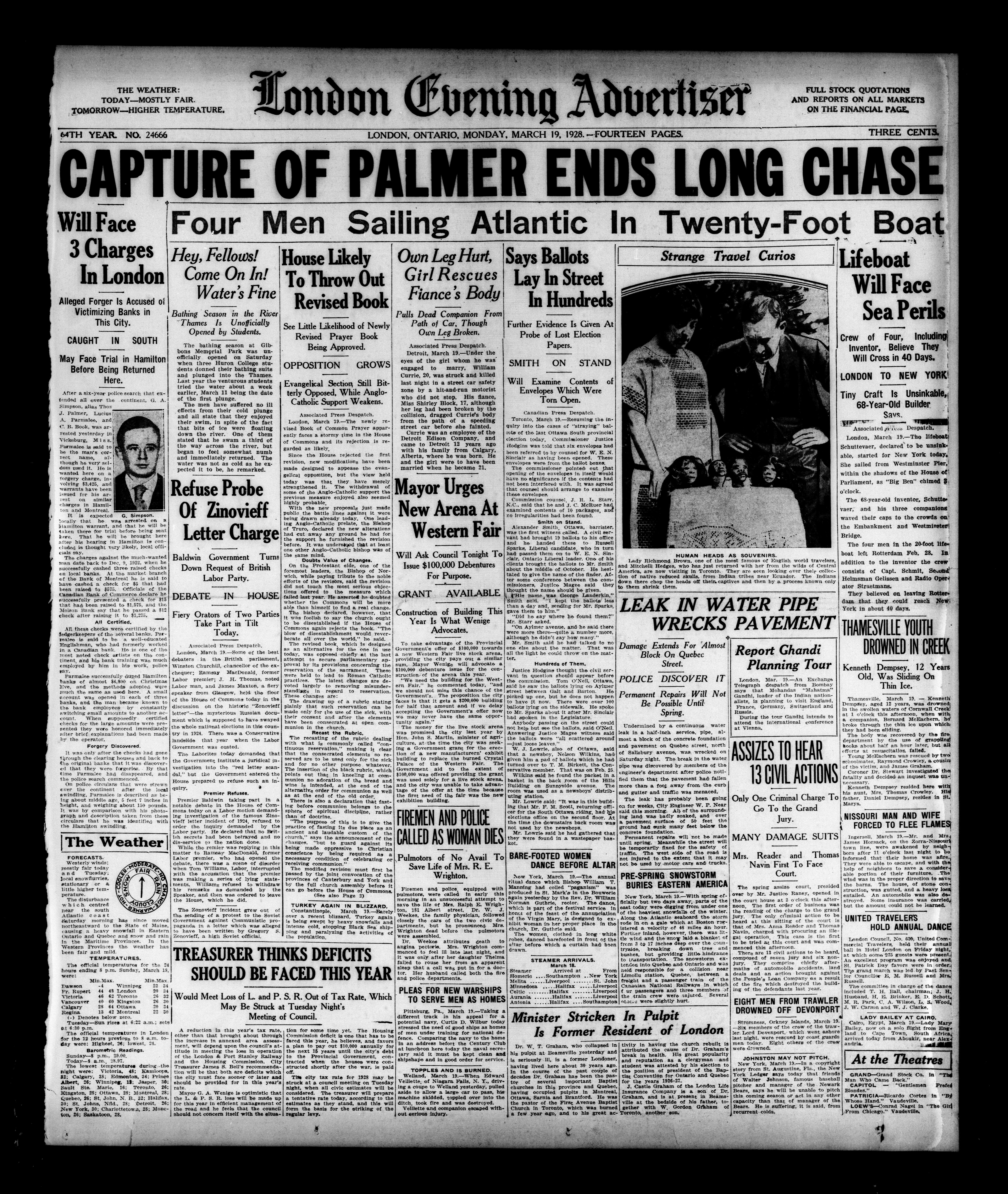 London evening advertiser : 64th Year, No. 24666 (March 19, 1928) - Published