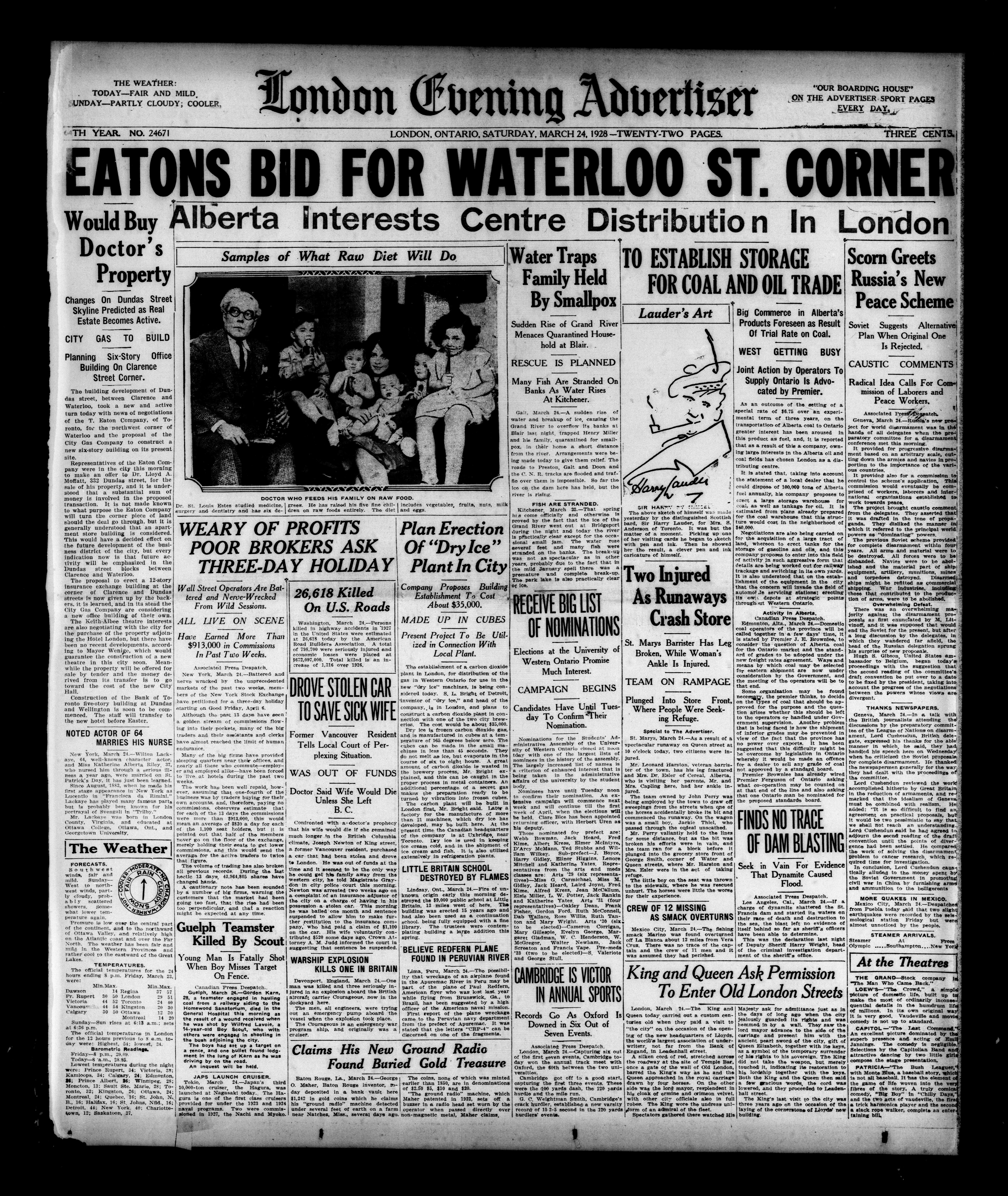 London, Ontario : London Advertiser Company, Limited, [1928]; 22 images, 0 avec recherche en texte intégral