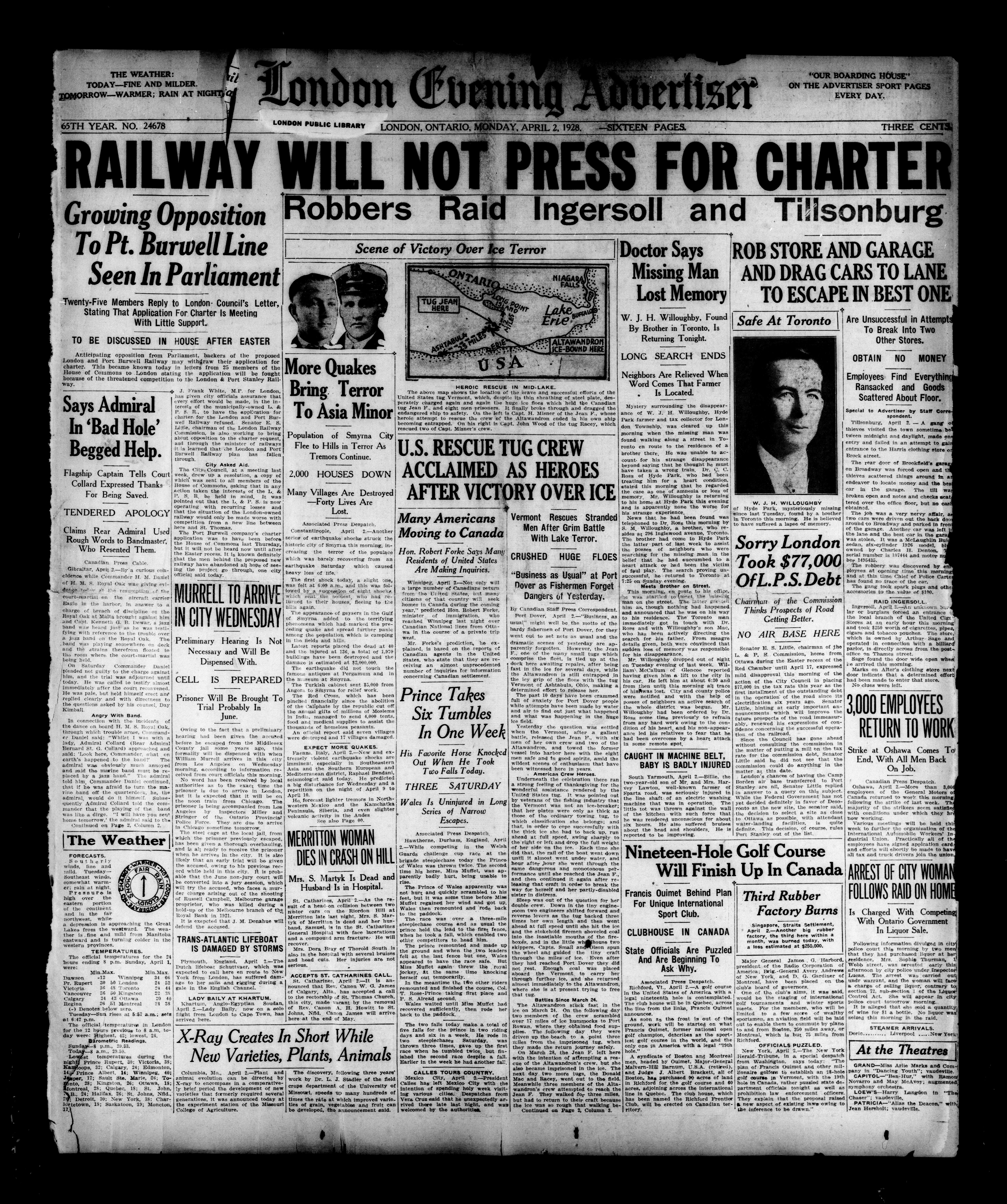 London evening advertiser : 65th Year, No. 24678 (April 2, 1928) - Adresse bibliographique