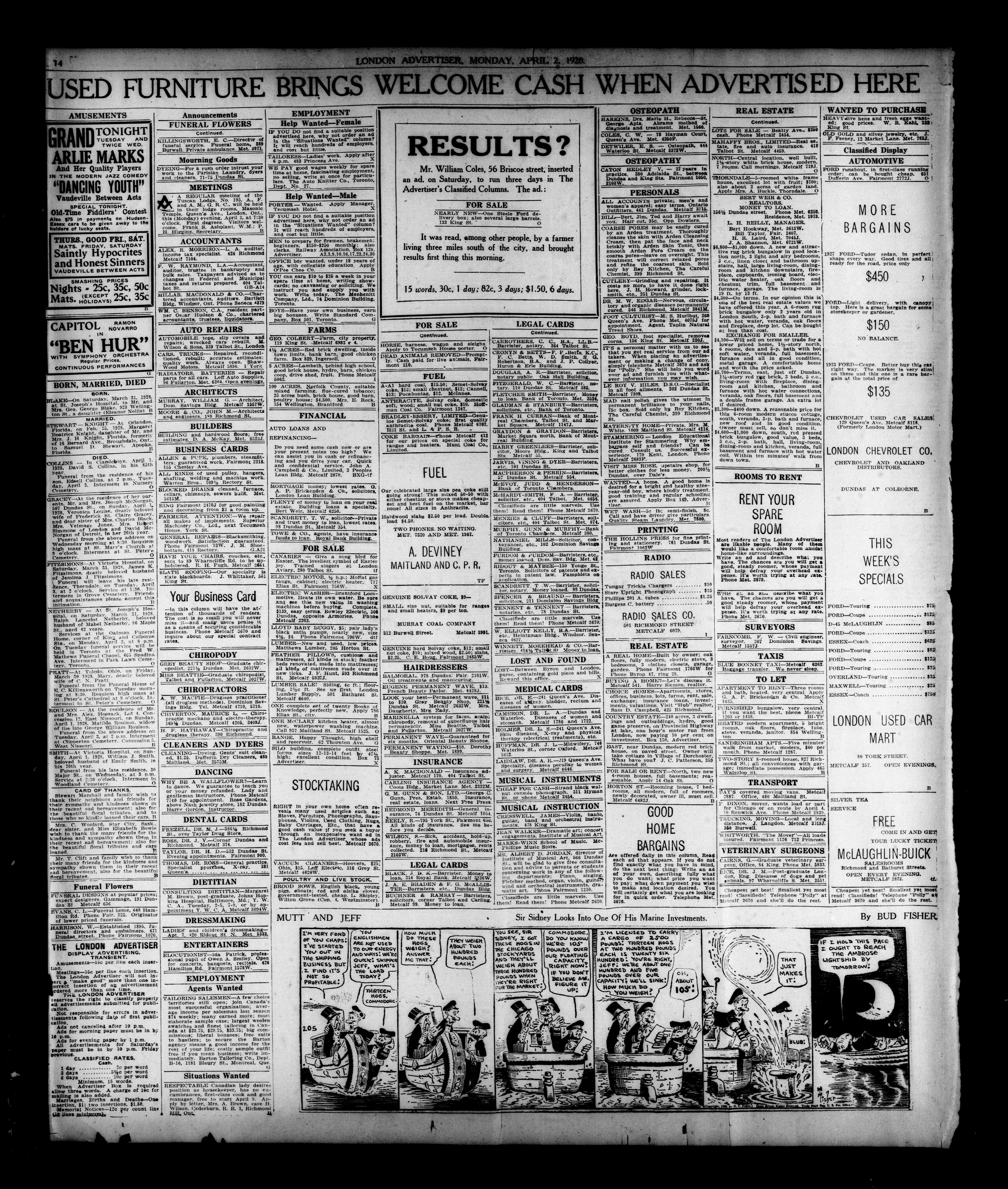 London evening advertiser : 65th Year, No. 24678 (April 2, 1928) - Adresse bibliographique