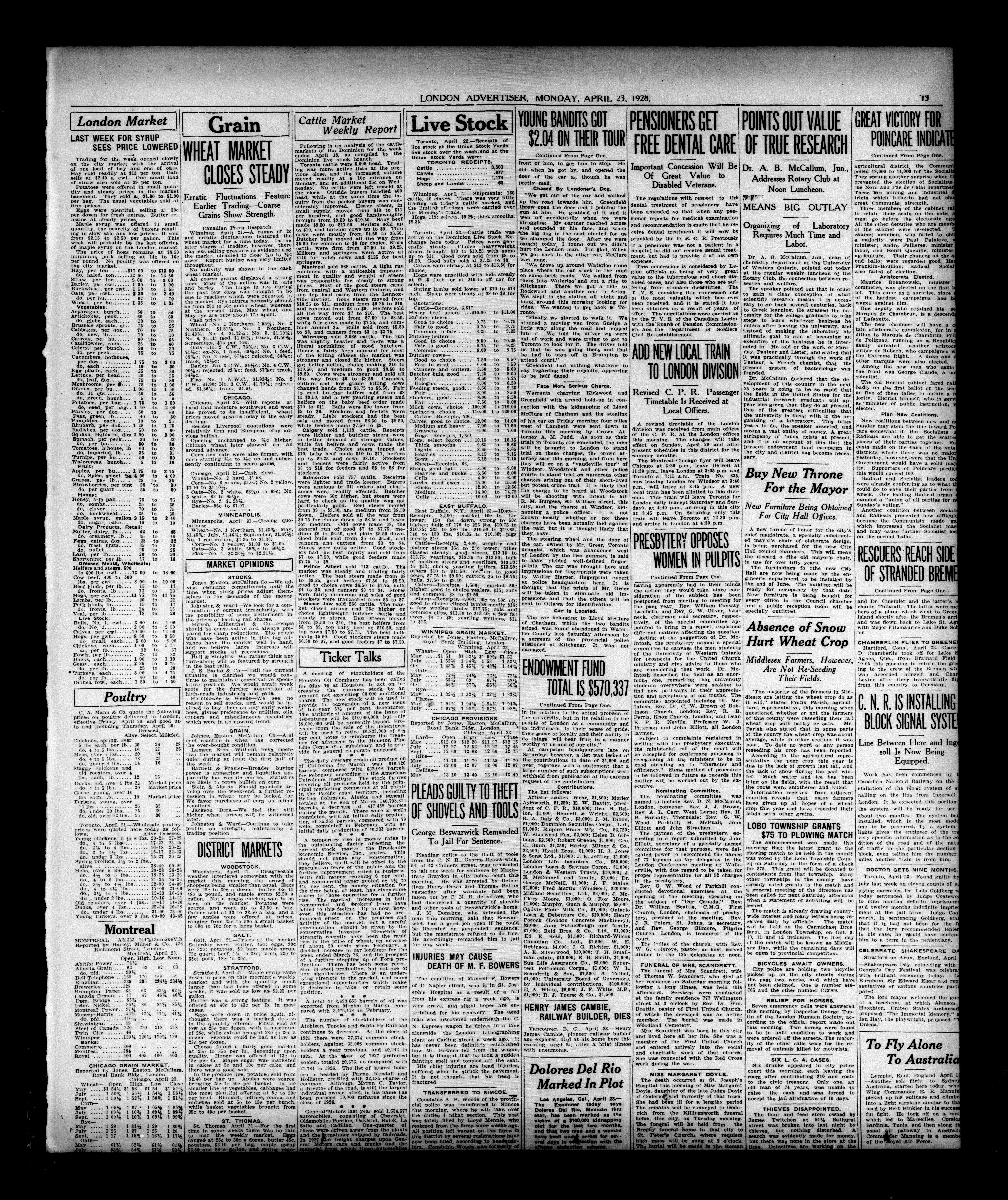 London, Ontario : London Advertiser Company, Limited, [1928]; 16 images, 0 avec recherche en texte intégral