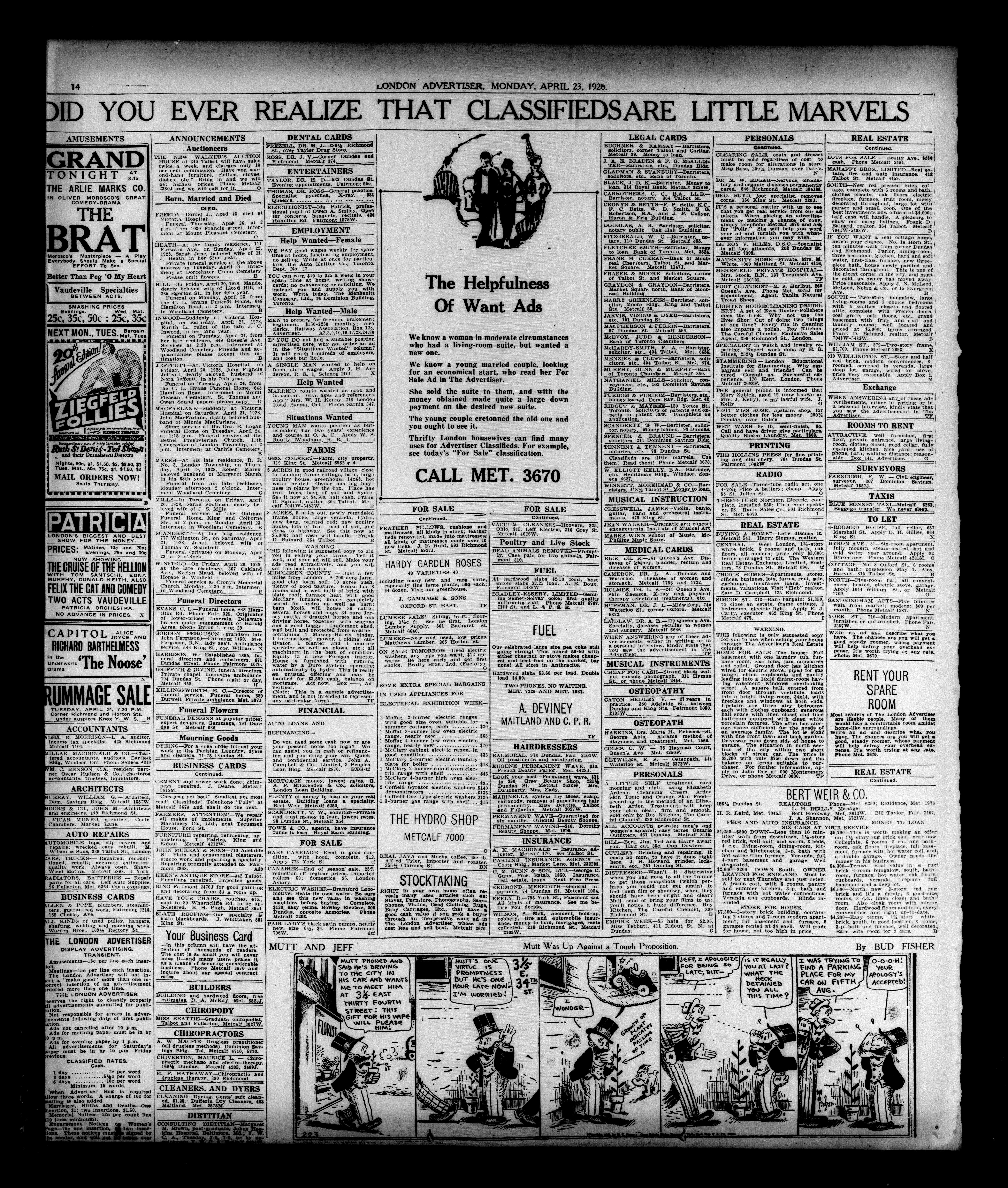 London, Ontario : London Advertiser Company, Limited, [1928]; 16 images, 0 avec recherche en texte intégral