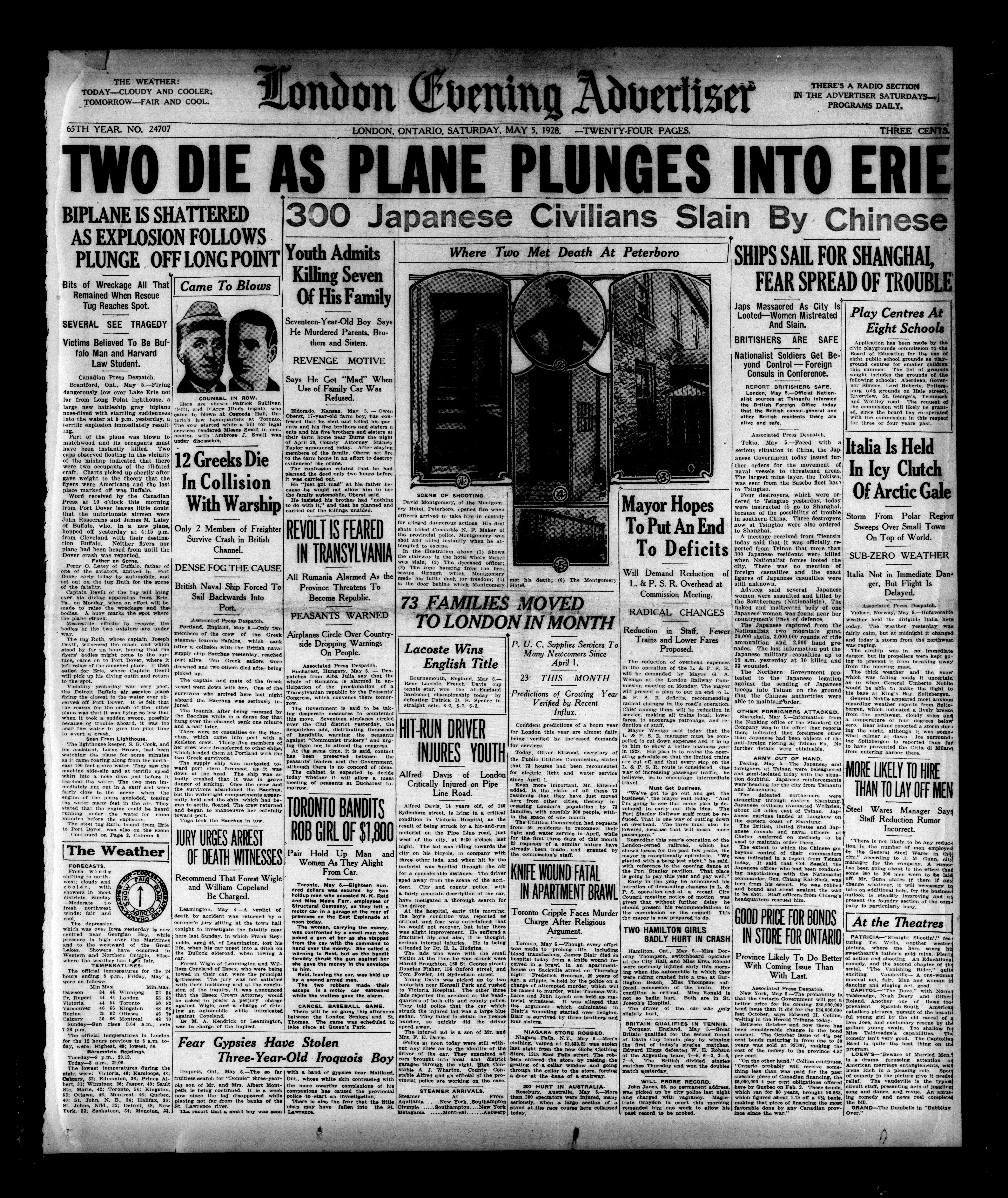 London, Ontario : London Advertiser Company, Limited, [1928]; 24 images, 0 avec recherche en texte intégral