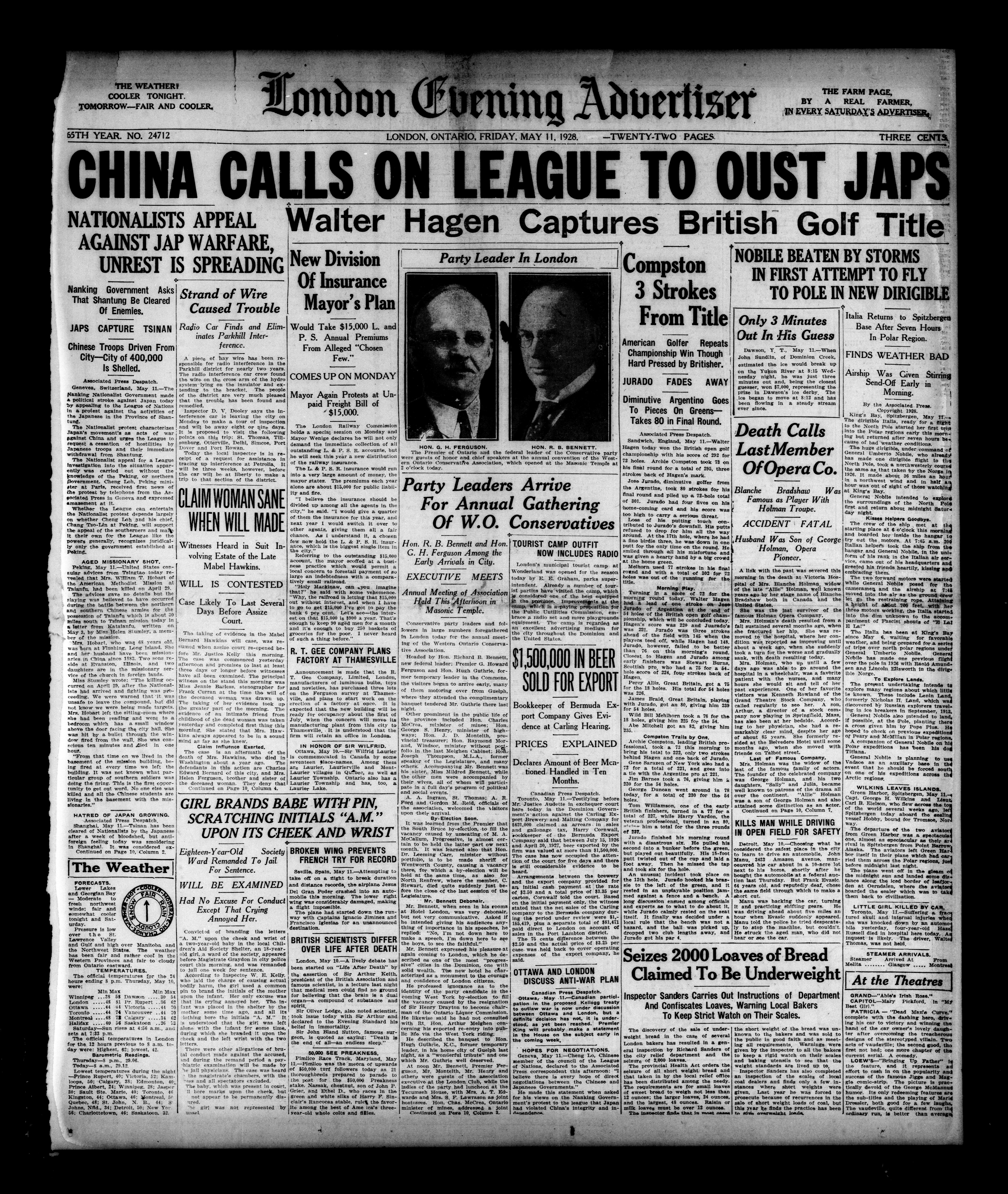 London, Ontario : London Advertiser Company, Limited, [1928]; 22 images, 0 avec recherche en texte intégral
