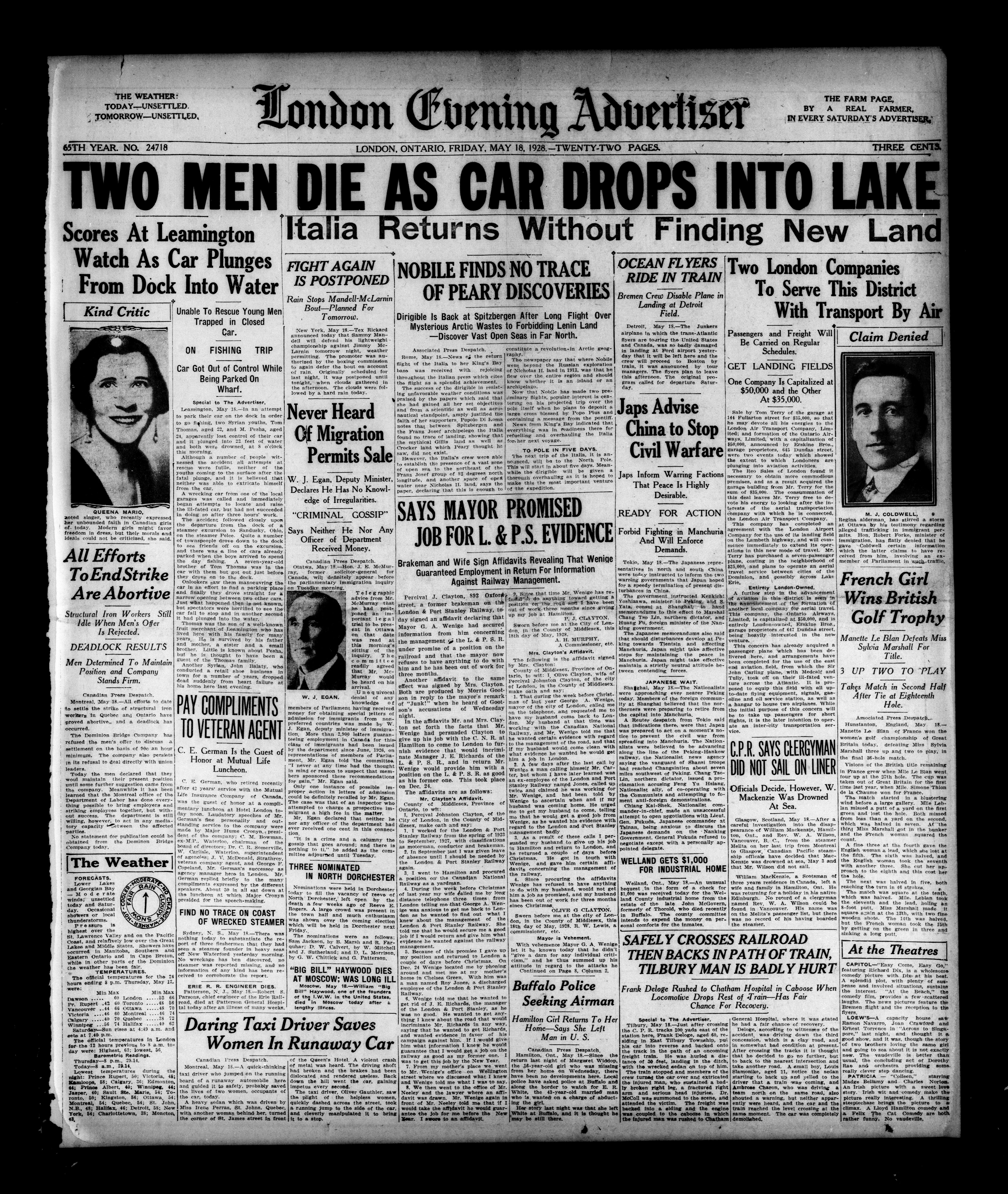 London, Ontario : London Advertiser Company, Limited, [1928]; 22 images, 0 avec recherche en texte intégral